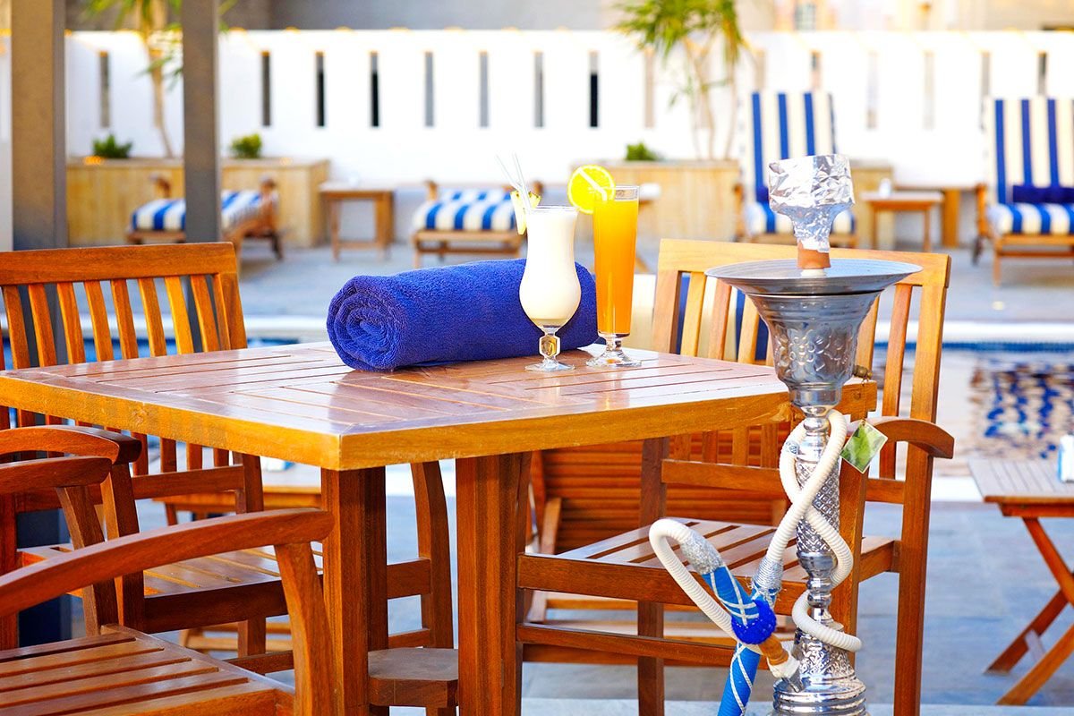 basen, słodka woda: ok. 25 m², gł. do 1,5 m, hydromasaż, przy basenie bezpłatne parasole, leżaki z materacami i ręczniki; siłownia, na plaży przy hotelu Bin Majid Beach: bezpłatnie: siatkówka, za opłatą: sporty wodne: jet ski, banan, windsurfing.