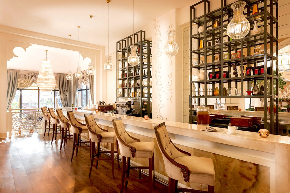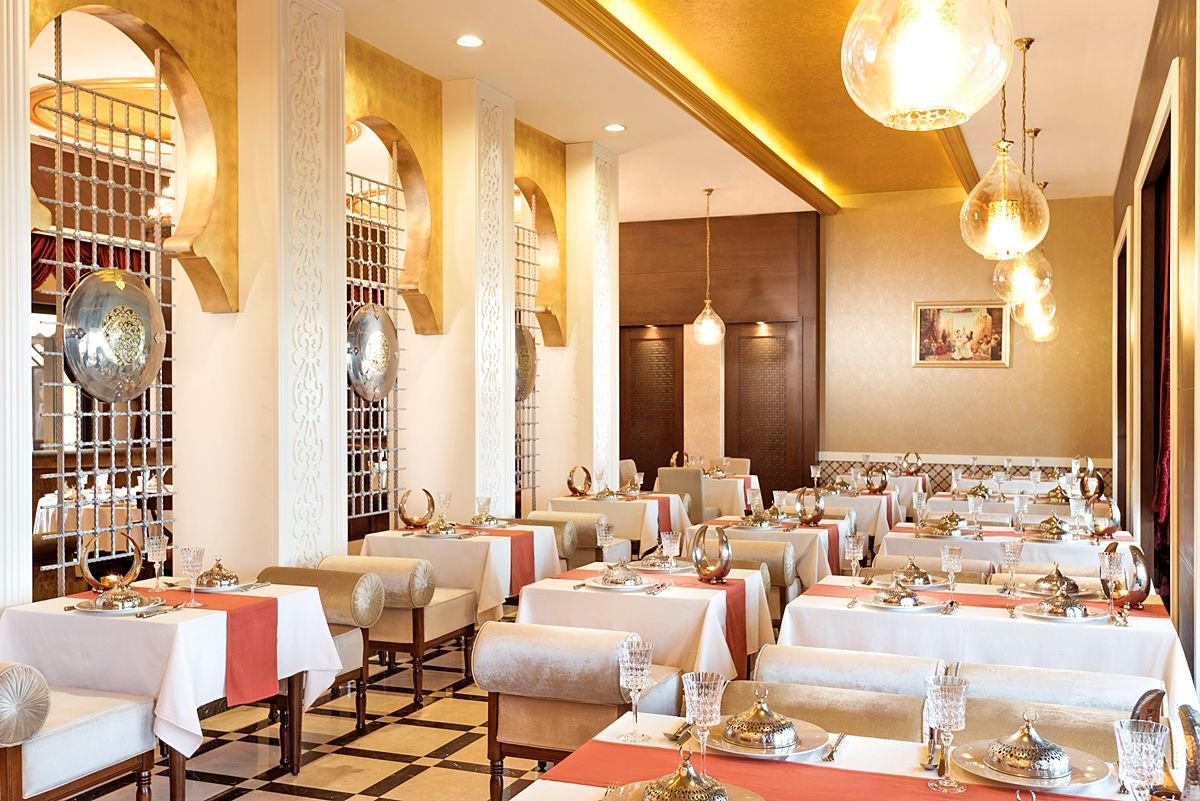 pięciogwiazdkowy, luksusowy, zbudowany w 2012 r., odnowiony w 2019 r., 650 pokoi, budynek główny z lobby, restauracjami, barami, budynki w kształcie piramid, do 8 pięter, 9 wind, przestronne i eleganckie lobby, całodobowa recepcja, 5 restauracji: Seven Heights – dania w formie bufetu, kuchnia turecka i libańska, Fish Bone – obsługa kelnerska, ryby i owoce morza, Lalezar – à la carte, kuchnia turecka i libańska, Meat Point – dania w formie bufetu, kuchnia południowoamerykańska, dania z grilla, L’Olvio – obsługa kelnerska, kuchnia włoska, 6 barów: Aisha w lobby, Mojito i Inferno w budynku głównym, Su i Cigar przy basenie, See&See na plaży; kantor, butik, sklep z pamiątkami, pralnia, fryzjer; centrum konferencyjne dla ok. 160 osób, 3 sale, taras z widokiem na teren hotelu, bezpłatny internet bezprzewodowy w miejscach ogólnodostępnych; za opłatą: całodobowy room-service, opiekunka do dziecka; akceptowane karty kredytowe: Visa, MasterCard.