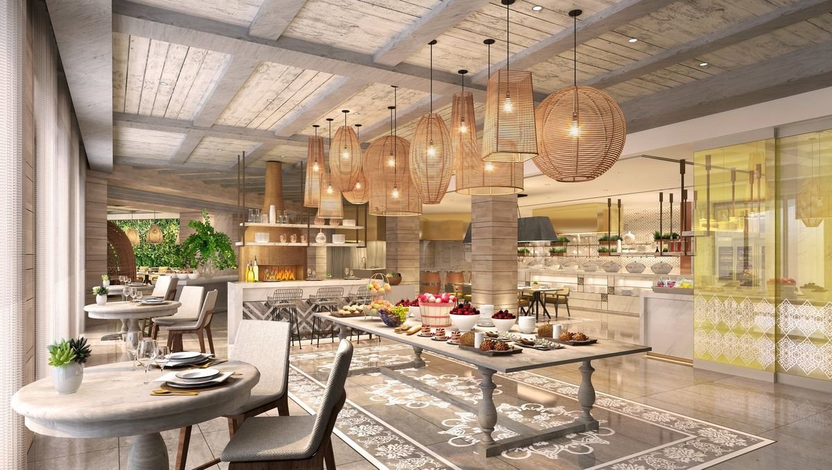 Zamknij oczy i wyobraź sobie miejsce, gdzie złocista plaża spotyka się z krystalicznie czystym morzem – to właśnie w Ras Al Khaimah znajduje się wyjątkowy zakątek, który łączy relaks, elegancję i niezapomniane doświadczenia. Wnętrza zaprojektowane z myślą o komforcie oraz dbałością o środowisko, z wykorzystaniem naturalnych materiałów, oferują m.in. przytulną i stylową przestrzeń, doskonałą na poranną kawę, w której estetyka łączy się z troską o ekologię. Wyrusz w kulinarną podróż od Azji po wybrzeże Morza Śródziemnego, delektując się aromatycznymi potrawami, a wieczorem rozkoszuj się koktajlami przy zachodzie słońca – wszystko w niezwykłej atmosferze i z widokiem, który zapiera dech! Prezentowany materiał graficzny przedstawia wizualizację obiektu.