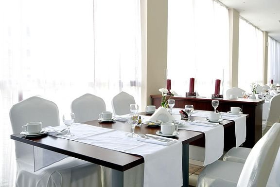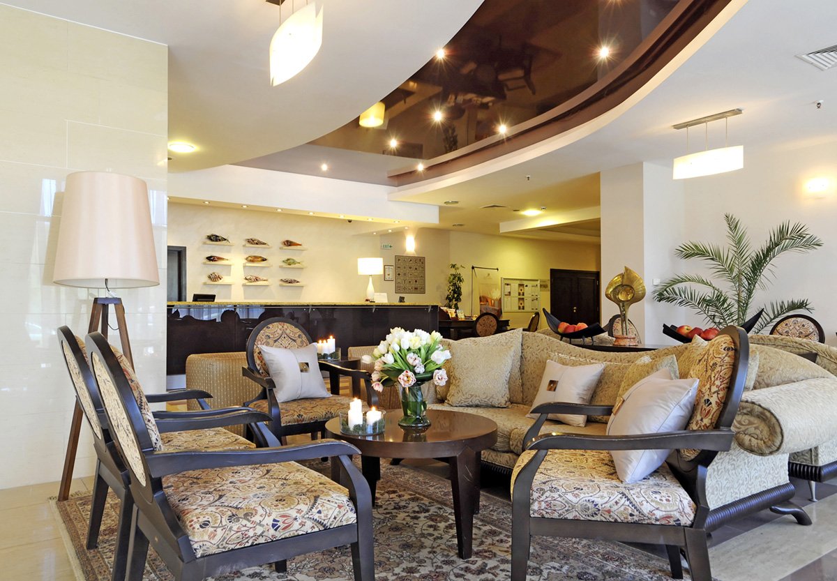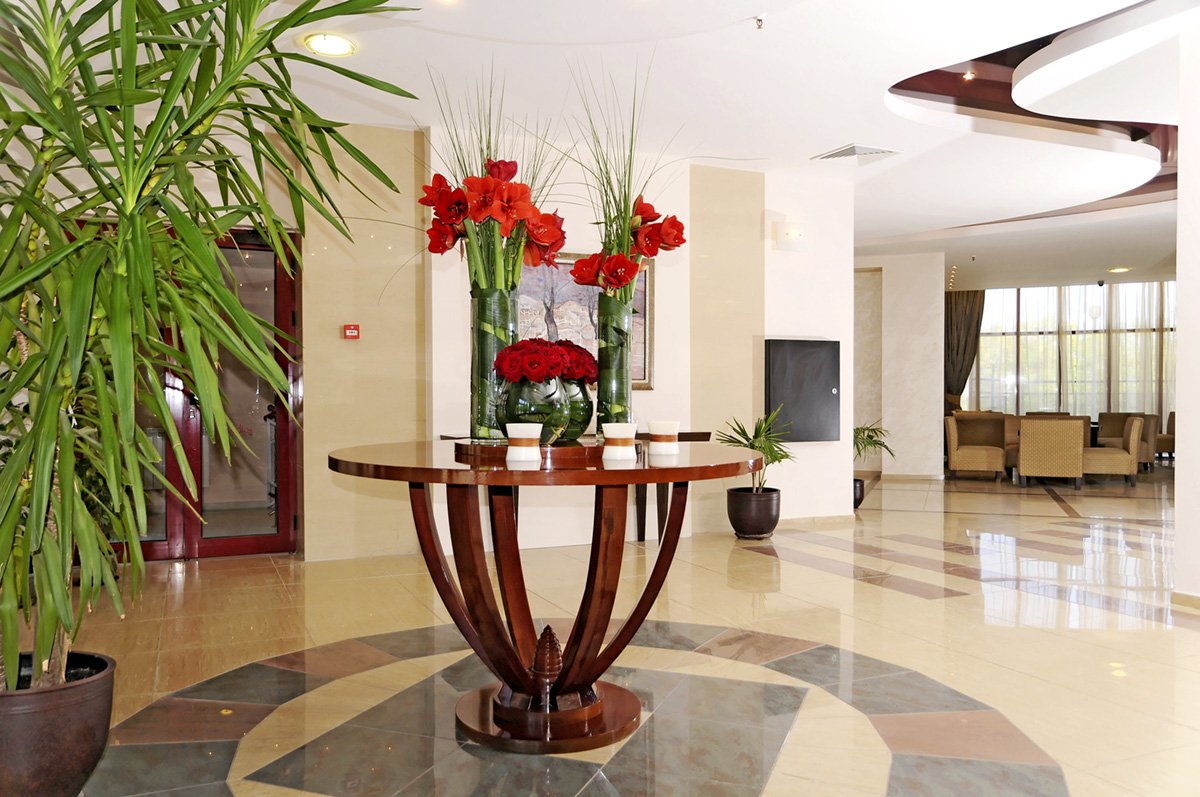 czterogwiazdkowy, zbudowany w 2004 r., odświeżony w 2018 r., 196 pokoi, 1 budynek, 7 pięter, 3 windy, przestronne lobby, całodobowa recepcja, restauracja Demeter – dania w formie bufetu, kuchnia lokalna i międzynarodowa, restauracja Dionysus – à la carte, kuchnia europejska, dostępne foteliki dla dzieci, dania wegetariańskie, 3 bary, w tym bar przy basenie; kantor; 8 sal konferencyjnych, taras z widokiem na basen i morze; bezpłatny internet bezprzewodowy w lobby; za opłatą: room-service, przechowalnia bagażu, prasowanie, wypożyczalnia samochodów, parking; akceptowane karty kredytowe: Visa, MasterCard.