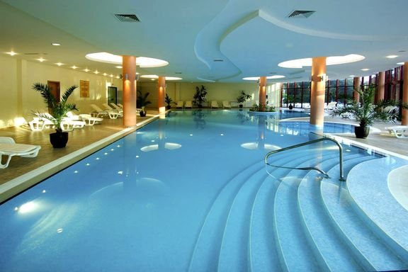 basen, słodka woda, nieregularny kształt, ok. 150 m², gł. 1,1-1,3 m, brodzik dla dzieci, słodka woda, ok. 30 m², gł. 0,6 m, basen ze zjeżdżalniami, słodka woda, ok. 230 m², gł. 1,1-1,5 m, przy basenach bezpłatne parasole, leżaki, materace i ręczniki; kryty basen, słodka woda, ok. 120 m², gł. 1-1,5 m; kort tenisowy z oświetleniem i wypożyczalnią sprzętu (płatna: ok. 10 BGN); pokój i plac zabaw dla dzieci, miniklub (4-12 lat), dzienne i wieczorne animacje dla dorosłych i dzieci, dyskoteka, amfiteatr; za opłatą: siłownia, centrum wellness: zabiegi pielęgnacyjne.