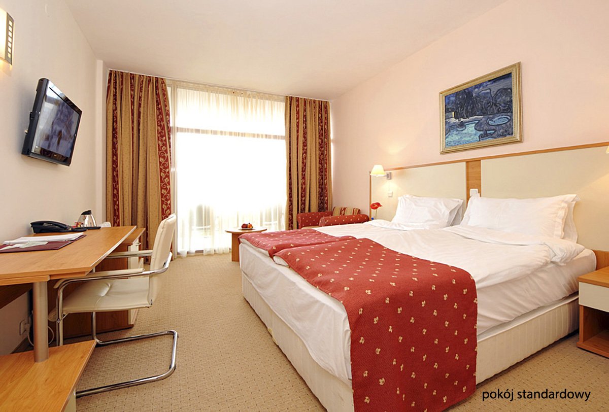 ok. 450 m od centrum ZŁOTYCH PIASKÓW, najbliższe sklepy ok. 200 m od hotelu, na terenie Parku Krajobrazowego Złote Piaski; ok. 25 km od lotniska w Warnie, ok. 130 km od lotniska w Burgas; przystanek autobusowy ok. 200 m od hotelu (ok. 3 BGN/Warna).