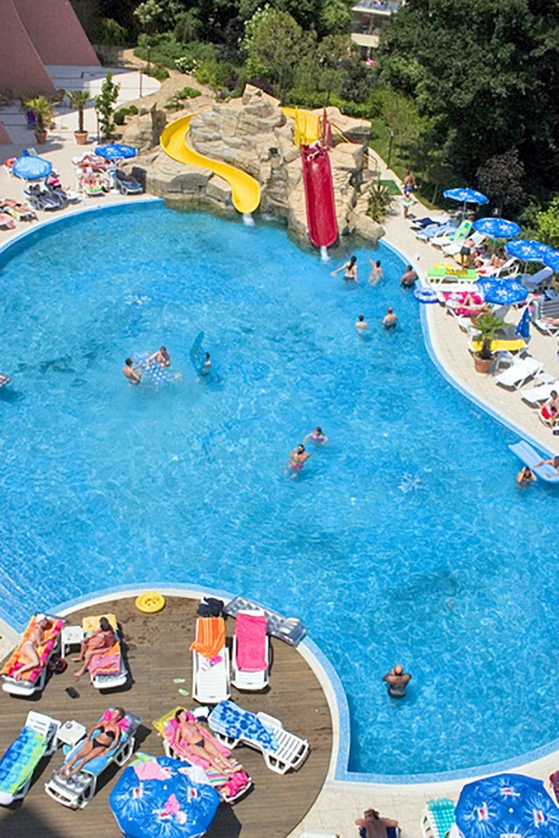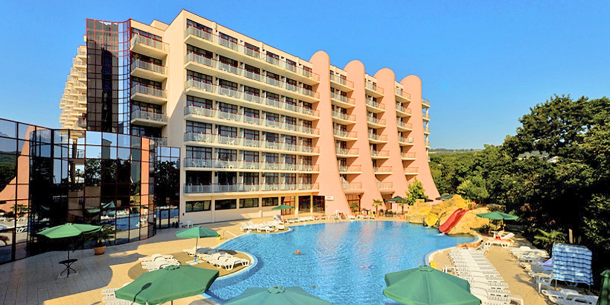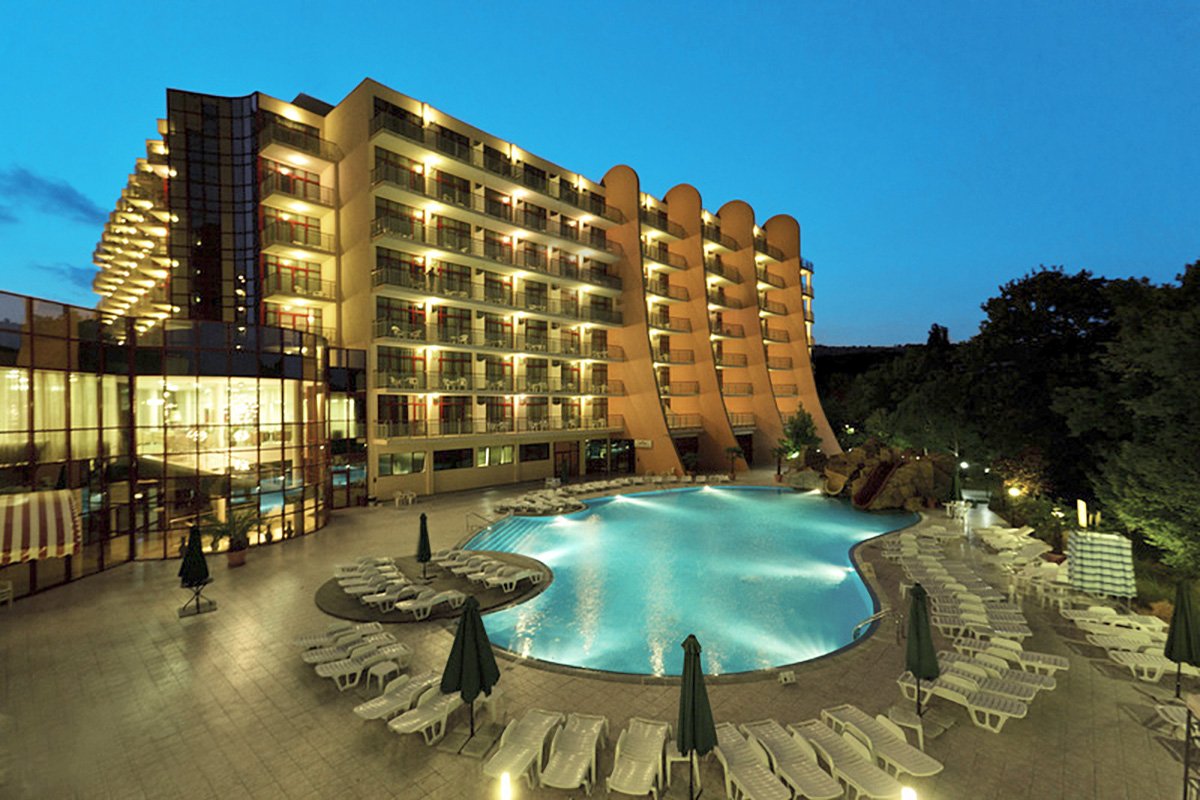 Otoczony parkiem krajobrazowym, położony w malowniczej zatoce w północnej części wybrzeża Morza Czarnego, blisko pięknej plaży i centrum Złotych Piasków. Elegancki i zadbany, z wygodnymi pokojami standardowymi, przestronnymi pokojami rodzinnymi i funkcjonalnymi apartamentami. To świetne miejsce na wakacje z rodziną – dzieciaki mogą bawić się podczas zajęć w miniklubie, w ciągu dnia i wieczorami organizowane są ciekawe animacje. Życie toczy się tutaj wokół 2 basenów ze zjeżdżalniami, na których można poszaleć, lub poleniuchować na leżaku. Do pobliskiej plaży kursuje z hotelu minikolejka, a do plaży Nirvana z bezpłatnym serwisem dojechać można hotelowym busem. Na profesjonalne zabiegi i relaksujące masaże zaprasza centrum spa, którego główną filozofią jest uzyskanie równowagi pomiędzy ciałem i duchem.