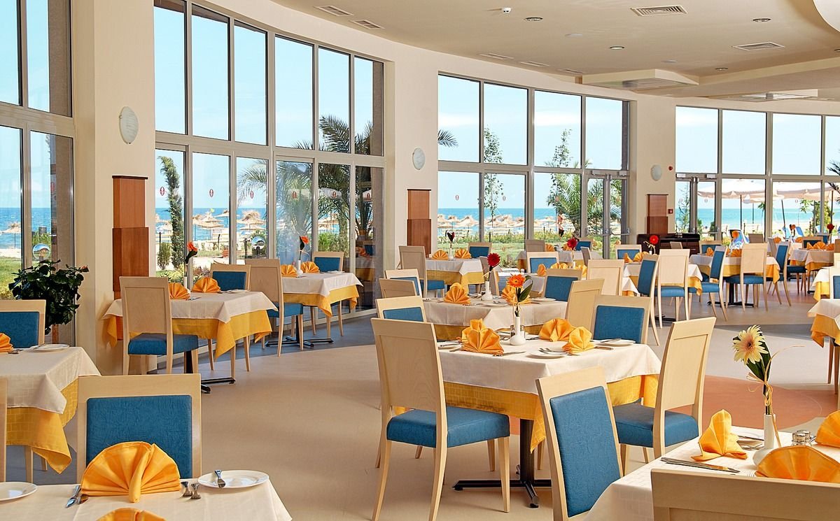 śniadanie (7.30-10.00), obiad (12.30-14.30) w formie bufetu w restauracji głównej, kolacja (18.00-21.00) w formie bufetu do wyboru: w restauracji głównej, w Osteria La Spiaggia lub w restauracji a la carte Morsko Oko (w restauracjach: Morsko Oko i Osteria La Spiaggia wymagana wcześniejsza rezerwacja); przekąski: w Osteria La Spiaggia (12.00–14.00), w barze przy basenie (10.00-12.00), w barze w lobby (10.00-12.00, 15.00-17.30 i 21.30-23.00), tradycyjne panini w Panninoteca Luna (12.00-16.00), paella w Paellador Levante (8.00-17.00 i 19.00-21.00); lokalne napoje alkoholowe i bezalkoholowe oraz kawa i herbata w barze w lobby (9.00-23.00) i w barze przy basenie (9.00-17.00), tradycyjna sangria, kubańskie koktajle i lane piwo w Taperia Malecon (15.00-23.00).