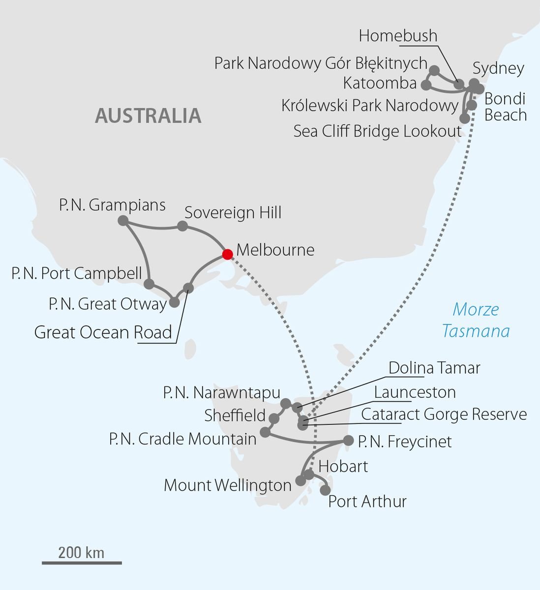 Odkryj duet idealny: Australię i Tasmanię! Wybierz się w podróż życia, gdzie czekają na Ciebie spektakularne krajobrazy, dzika przyroda i pełne street artu miasta. Przejedź słynną Great Ocean Road, zobacz majestatyczne 12 Apostołów i poczuj magię lasów deszczowych w Great Otway. Odkryj tajemnice Parku Narodowego Grampians i przenieś się w czasie w miasteczku poszukiwaczy złota. Tasmania zachwyci Cię zapierającymi dech widokami z Wineglass Bay i niesamowitą przyrodą Cradle Mountain – stań oko w oko z uroczym diabłem tasmańskim! Na koniec, poznaj tętniące życiem Sydney i zanurz się w jego niezwykłej atmosferze. Czekają na Ciebie niezapomniane chwile pełne przygód i piękna natury!