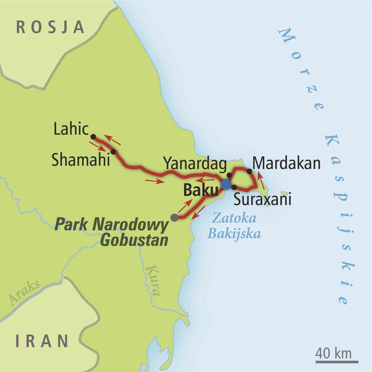 Azerbejdżan, nazywany krainą wiecznego ognia, może się kojarzyć z polami naftowymi. Jednak ta podróż pokaże, że nazwa wzięła się z innego powodu, a kraj ma do zaoferowania o wiele więcej niż pola naftowe. W programie są magiczne miejsca, gdzie płonie wieczny ogień, miejsca kultu zoroastrian, otaczających właśnie żywioł największą czcią. Baku – stolica, a zarazem największe i najbardziej kosmopolityczne miasto w kraju, wielokulturowe miejsce, które dzięki ogromnym złożom czarnego złota wyrosło na perłę Kaukazu. Miasto przeżywa dziś drugi boom. Obok labiryntu uliczek starego miasta i kamienic nafciarzy w błyskawicznym tempie wyrastają luksusowe wieżowce. Trasa w Azerbejdżanie: ok. 750 km.