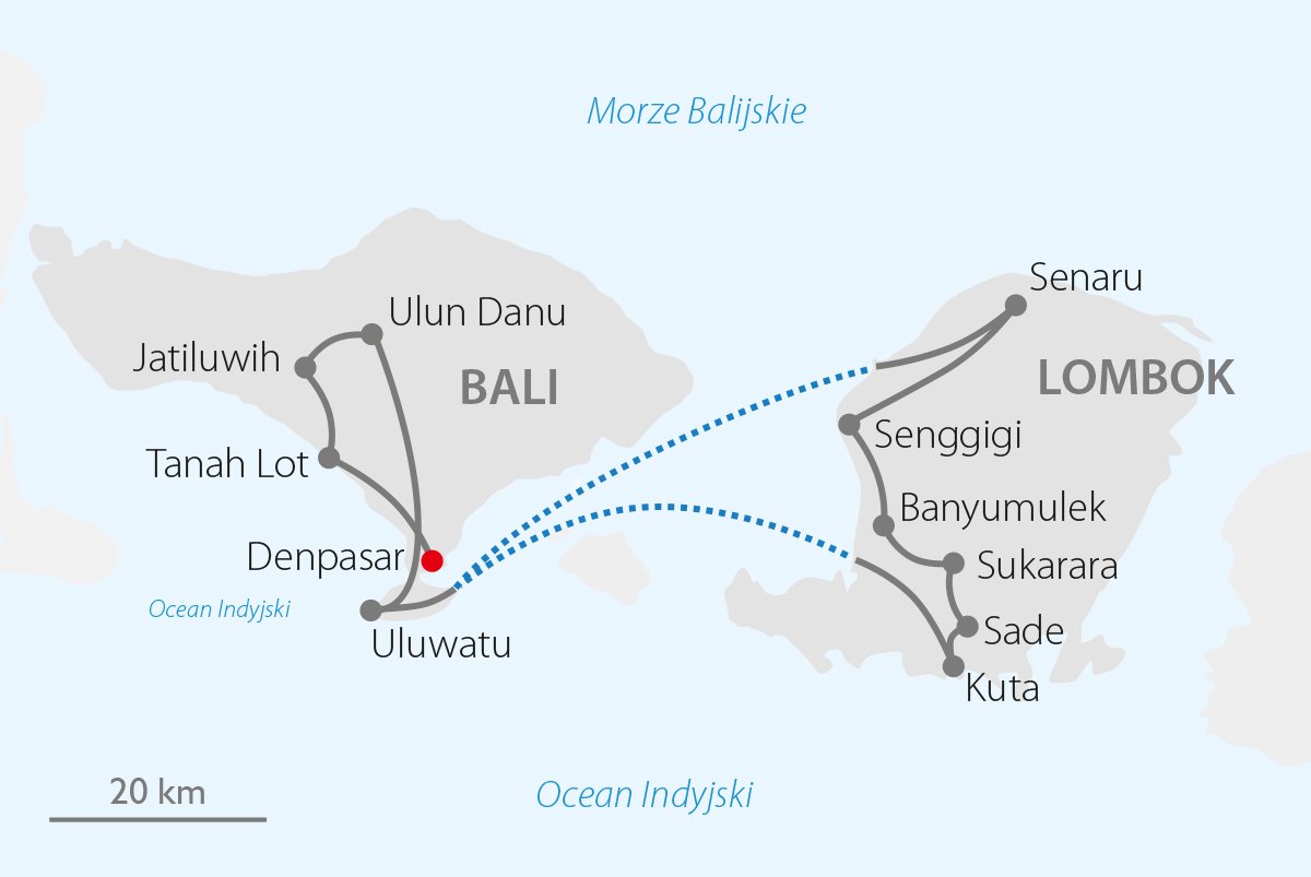 Marzysz o tym, by zobaczyć indonezyjskie wyspy Bali i Lombok? Wybierz się w magiczną podróż i poznaj egzotykę archipelagu Małych Wysp Sundajskich! Różnią się od siebie i gwarantują niezapomnianą podróż pełną kontrastów, pięknych widoków i najważniejszych zabytków. Pierwsza z nich rozpieści Twoje oczy soczystą zielenią pól ryżowych i zapewni niesamowitą ferię kolorów podczas spacerów przez tutejsze targi pełne tropikalnych smaków i zapachów – to właśnie Bali. Będąc na wyspie Lombok daj się zaskoczyć pięknem górzystych krajobrazów i bajkowych wodospadów. Dla chętnych możliwość wycieczki również na Archipelag Gili.