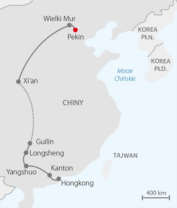 Państwo Środka to marzenie każdego podróżnika. Długa historia odmierzana kolejnymi dynastiami, wspaniałe zabytki, baśniowe krajobrazy i ciekawe zwyczaje sprawiają, że Chiny są jednym z najatrakcyjniejszych turystycznie krajów świata. Na trasie wielkie metropolie: Pekin i Hongkong, gdzie do tej pory w budownictwie przestrzega się zasad feng shui, zachwycające krajobrazy w okolicach Yangshuo – raj dla fotografów, Mur Chiński widziany nawet z kosmosu i spotkanie z 8 tys. wojowników w Xi’an. W programie fakultatywnym pełen wybór: opera i piękne wycieczki blisko natury i codziennego życia mieszkańców.