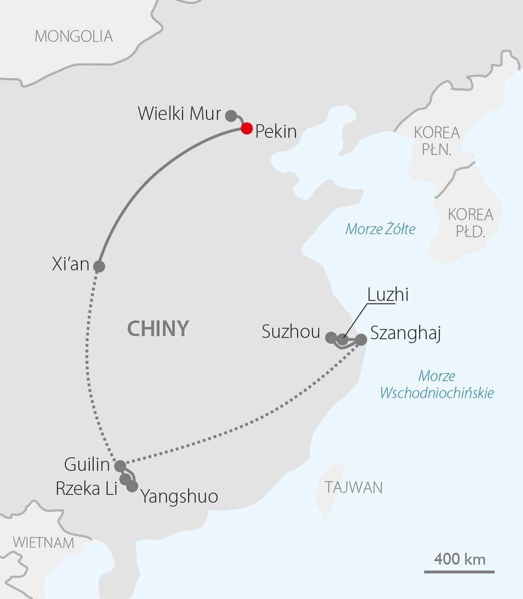 Wybierz się w podróż, która zabierze Cię do serca Chin, kraju pełnego tajemnic, kontrastów i niezwykłych widoków. Podczas tej wyjątkowej wycieczki odkryjesz najważniejsze symbole tego państwa – od monumentalnego Pekinu, przez niezrównany Wielki Mur, po futurystyczne drapacze chmur w tętniącym życiem Szanghaju. Zobaczysz zapierający dech krajobraz Guilin, a rejs po rzece Li dostarczy Ci niezapomnianych wrażeń w otoczeniu majestatycznych formacji krasowych. Wizyta w Xi’an pozwoli Ci poczuć się jak odkrywca, a spacer po malowniczym Luzhi czy Suzhou odsłoni przed Tobą tajemnice chińskich ogrodów i tradycyjnej architektury. Dzięki kameralnej grupie każda chwila tej podróży będzie miała wyjątkowy charakter, a Ty w pełni zanurzysz się w bogatej kulturze i historii Chin, odkrywając ich najpiękniejsze skarby.