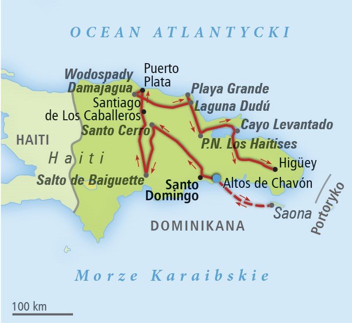 Wspaniała trasa objazdowa po Dominikanie, piękna podróż dla wszystkich, którzy kochają karaibską witalność, dla marzących o widoku kokosowych palm pochylonych nad szmaragdowym morzem, dla pasjonatów przyrody, która w tym kraju szczególnie zachwyca. Na trasie są takie cuda natury, jak wodospady, jaskinie, groty skalne, egzotyczny Park Narodowy Los Haitises. W programie jest również tętniąca życiem stolica Dominikany – Santo Domingo z zabytkami z listy UNESCO i czas na relaks na najpiękniejszych plażach świata. Warto przedłużyć pobyt o tygodniowy wypoczynek w hotelu all inclusive na rajskiej wyspie.