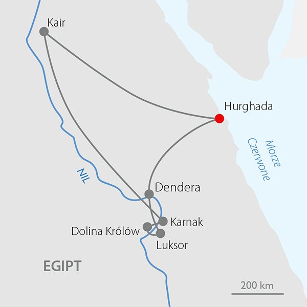 Hurghada • Dendera • Luksor • Dolina Królów • Karnak • Kair • Hurghada