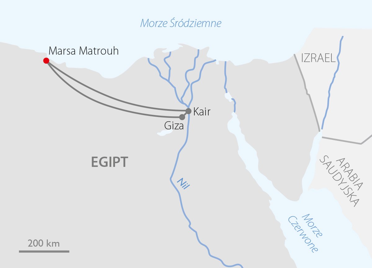 Zbiórka uczestników na lotnisku. Bezpośredni przelot do MARSA MATROUH, miasta resortowego leżącego w północno-zachodnim Egipcie. Słynie z długich, piaszczystych i przede wszystkim najpiękniejszych plaż w Egipcie, a także niezwykle czystej i turkusowej wody Morza Śródziemnego. Transfer do hotelu, zakwaterowanie. Kolacja, nocleg.