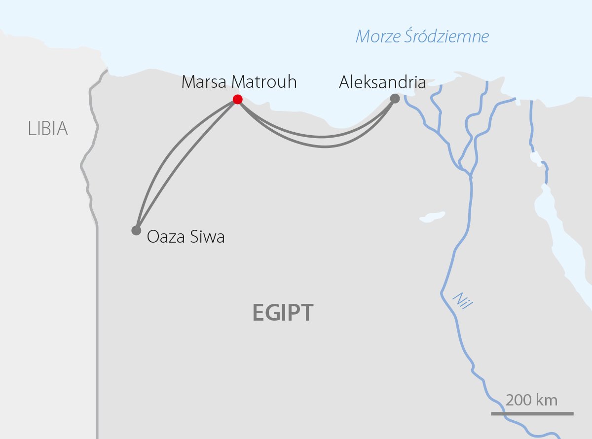 Zbiórka uczestników na lotnisku. Bezpośredni przelot do MARSA MATROUH. Transfer do hotelu, zakwaterowanie. Kolacja, nocleg.