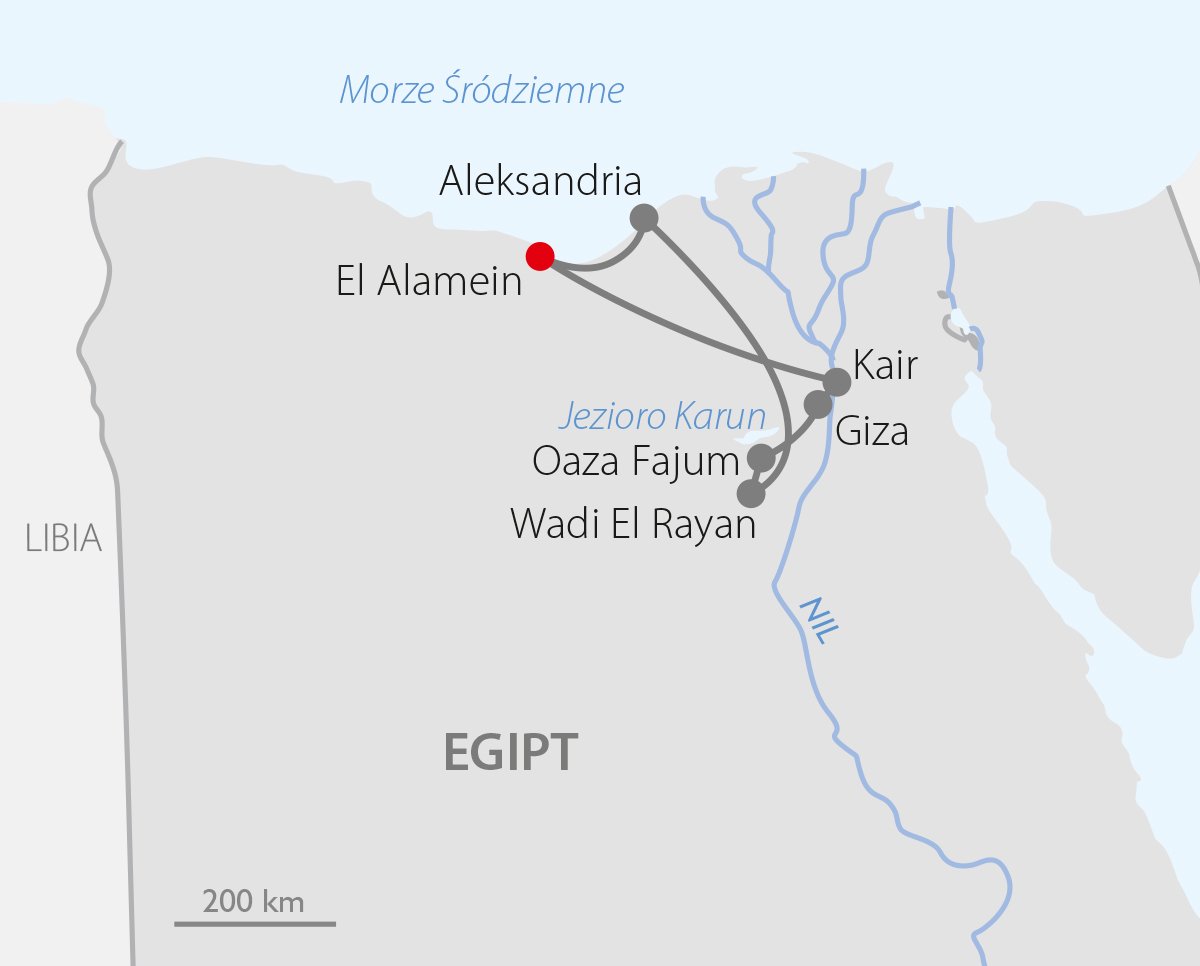Zbiórka uczestników na lotnisku. Przelot do EL ALAMEIN. Transfer do hotelu, zakwaterowanie. Kolacja i nocleg.
