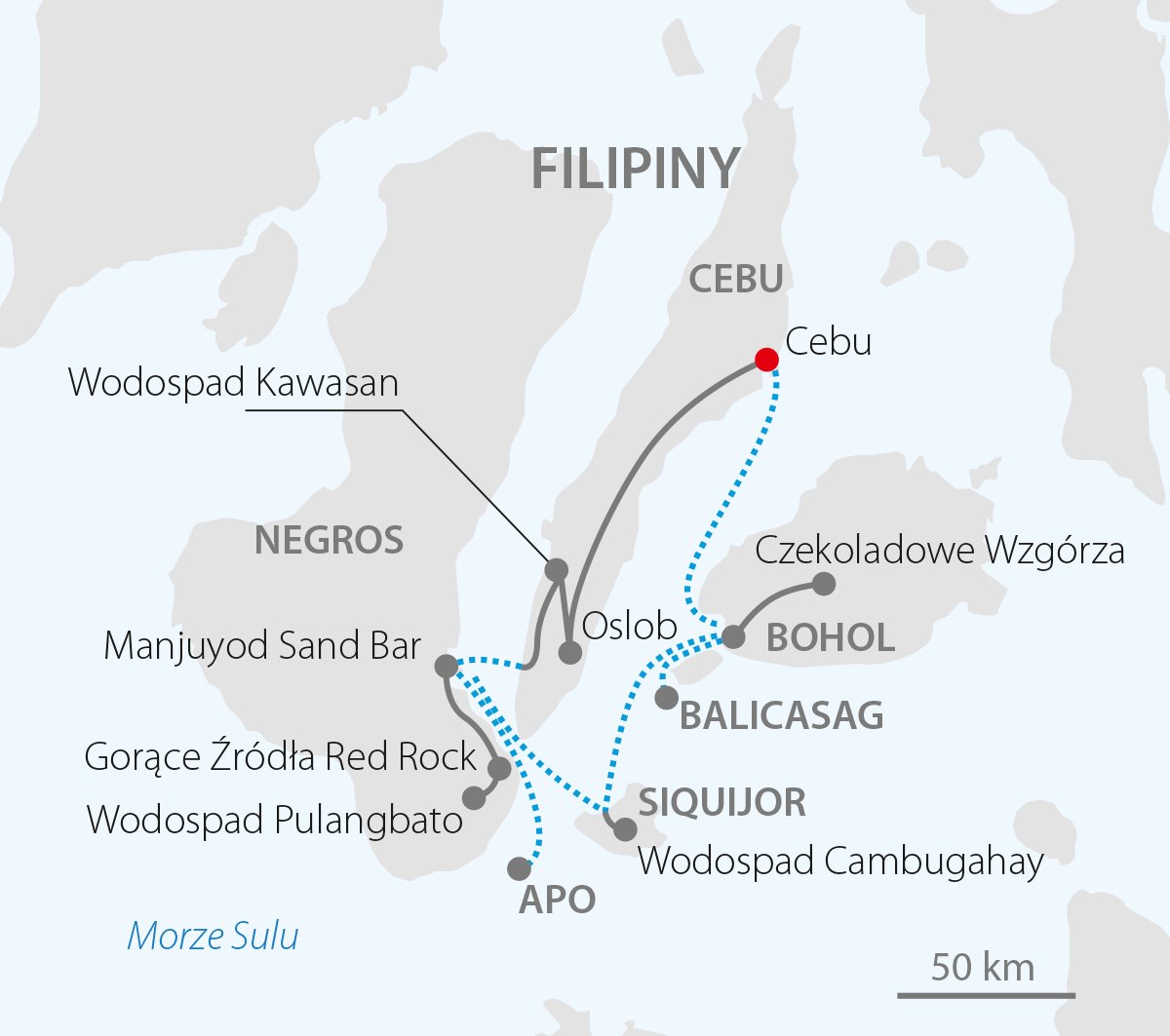 Marzysz o aktywnej podróży, w której każdego dnia czeka Cię nowe, niezapomniane doświadczenie? Wybierz się na Filipiny – rajski archipelag, gdzie turkusowe morze, egzotyczna przyroda i niezwykłe atrakcje tworzą idealne połączenie. Podczas wycieczki popływasz z ogromnymi, ale łagodnymi rekinami wielorybimi, zrelaksujesz się w gorących źródłach Red Rock i odkryjesz tajemniczą Wyspę Czarów. Czekają Cię też orzeźwiające kąpiele pod malowniczymi wodospadami oraz spotkania z podwodnym światem pełnym kolorowych raf i żółwi. Program jest pełen aktywności, a w dni wolne sam zdecydujesz, czy wyruszysz na kolejne przygody, czy po prostu odpoczniesz na rajskich plażach. To podróż, która łączy odkrywanie natury, odrobinę tajemnicy i relaks w tropikalnym raju. Filipiny czekają, abyś poczuł ich magię!