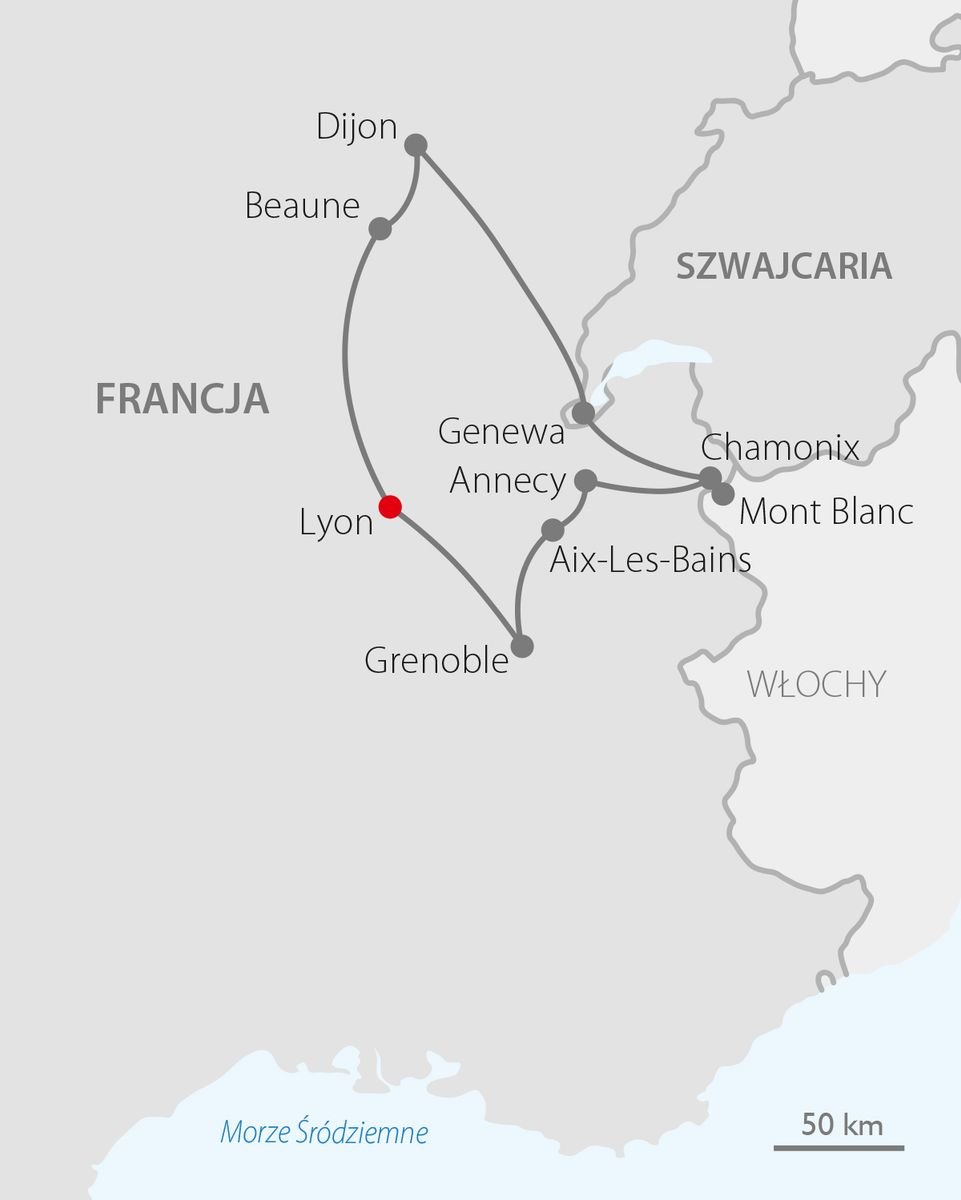 Weź udział w wyjątkowej wycieczce, która łączy komfortowy wypoczynek z intensywnym zwiedzaniem najpiękniejszych zakątków Francji i Szwajcarii. Odkryj uroki Lyonu, kulinarnej stolicy Francji, gdzie renesansowa architektura i wspaniałe zabytki zachwycają każdego. Odwiedź także malownicze Grenoble, słynące z górskich widoków i olimpijskiej historii, oraz Aix-les-Bains, urokliwe uzdrowisko nad jeziorem Bourget. Podziwiaj oszałamiające panoramy Alp z Chamonix i Mont Blanc, a także poczuj kosmopolityczną atmosferę Genewy. To niezapomniana podróż pełna inspirujących miejsc i fascynujących historii, idealna dla miłośników pięknych widoków, kultury i aktywnego zwiedzania!