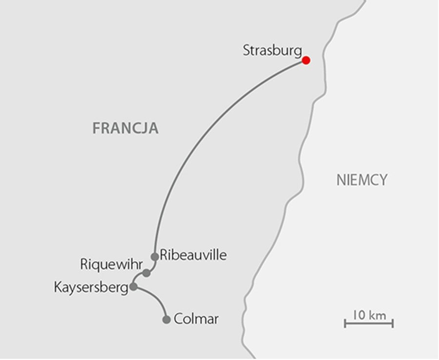 Śniadanie. Przejazd do RIBEAUVILLE, najczęściej odwiedzanego miasteczka w Alzacji, pięknie położnego u podnóża słynnych winnic. Spacer do rynku starego miasta z barokowym ratuszem i renesansową fontanną, dalej główną ulicą La Grand’Rue do bramy miasta Porte des Bouchers z XIII w. Czas wolny w miasteczku. Przejazd do RIQUEWIHR, miasteczka otoczonego średniowiecznymi murami, gdzie kolorowe fasady kamienic tworzą baśniową scenografię. Zabudowa starówki to domy z XV, XVI i XVII w. Spacer uliczkami starego miasta do najważniejszego punktu, którym jest Rue du General de Gaulle, którą wieńczy wieża zegarowa, następnie dawny szpital św. Erarda oraz świątynia pod wezwaniem św. Małgorzaty, Baszta Złodziei, gdzie zgromadzono narzędzia tortur. Zwiedzanie kościoła Notre Dame z XVI w. Czas na zakupy świątecznych ozdób, pierników oraz tradycyjnych potraw. Przejazd do pięknego miasteczka KAYSERSBERG. Spacer do słynnego, ufortyfikowanego mostu i renesansowej fontanny w centrum. Zwiedzanie kościoła Świętego Krzyża z XII-XV w., zbudowanego z czerwonego piaskowca. Czas wolny. Przejazd do hotelu, nocleg.
