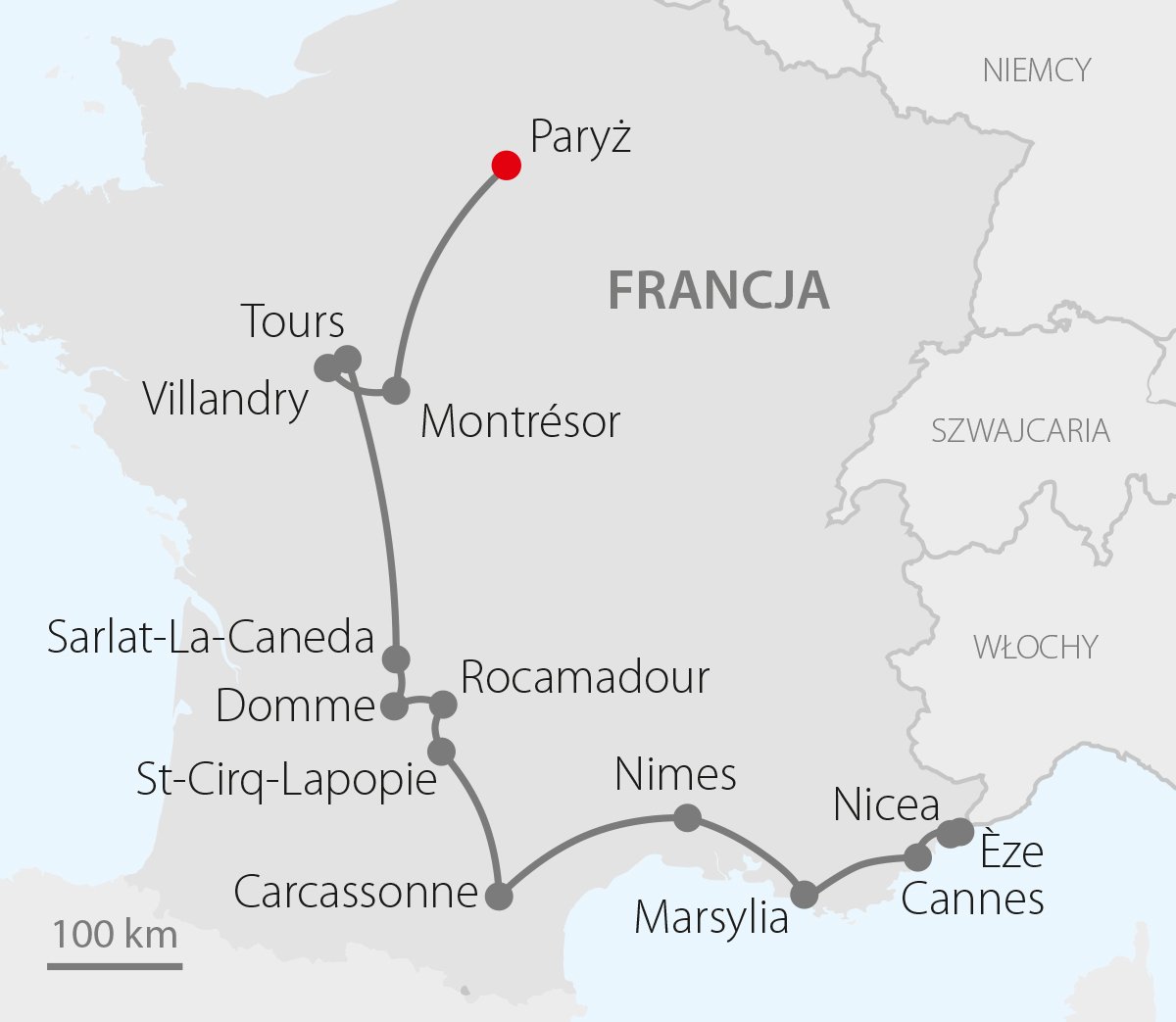 Odkryj Francję jak nigdy dotąd – od romantycznego Paryża po słoneczne Lazurowe Wybrzeże! W ciekawym programie fascynujące zabytki, piękne krajobrazy i niezapomniane atrakcje. Wypłyń w rejs po Sekwanie, gdzie panorama miasta z wieżą Eiffla w tle wprowadzi Cię w niepowtarzalny klimat stolicy. Odwiedź bajkowe zamki nad Loarą, gdzie historia przenika się z pięknem przyrody oraz tajemnicze zakątki średniowiecznego Rocamadour. Zakochaj się w złocistych kamienicach Sarlat, a w Carcassonne poczuj filmową magię Robin Hooda. Nie zabraknie również malowniczej Nicei, kosmopolitycznej Marsylii i spaceru po czerwonych dywanach Cannes. Gotowy na niezapomniane wrażenia?