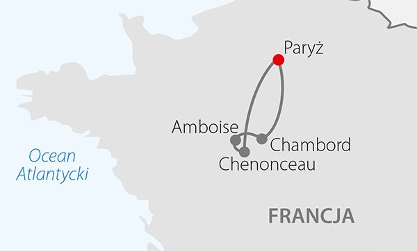 Znakomite połączenie: pobyt w Paryżu – metropolii żyjącej tempem XXI w., stolicy światowej mody i sztuki oraz powrót do przeszłości – zwiedzanie słynnych zamków, bajecznie położonych nad brzegami Loary i jej dopływów. Większość zamków pochodzi z epoki renesansu, zostały zaprojektowane przez włoskich artystów dla francuskich królów i arystokratów. Ponad 300 zamków w Dolinie Loary tworzy krainę historyczną chętnie odwiedzaną przez turystów z całego świata. Klasyczny, bardzo dobrze rozplanowany program zwiedzania Paryża pozwala w krótkim czasie poznać najważniejsze miejsca i poczuć wspaniałą atmosferę stolicy świata.