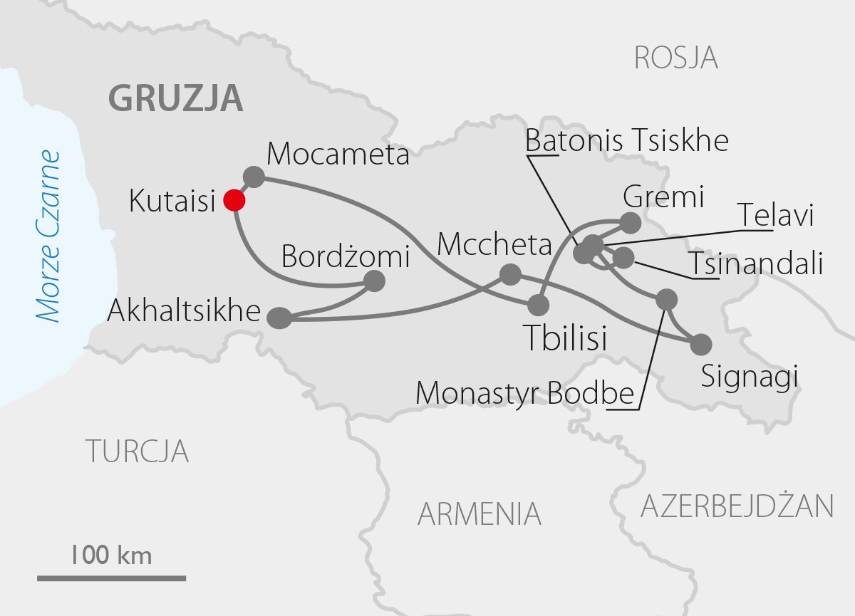 Daj się zaprosić w niezwykłą podróż do najbardziej wysuniętego na wschód obszaru Gruzji – Kacheti. Ten najstarszy na świecie region winiarski obfituje w malownicze widoki i dziką przyrodę. Liczne monastyry, małe miasteczka zatopione w zielonych dolinach pozwalają poczuć unikalną atmosferę tego miejsca. Miłośników win i oryginalnych smaków z pewnością zachwycą legendarne wina oraz przysmaki lokalnej kuchni. Jeden z ważniejszych punktów programu to uzdrowiskowe Bordżomi, którego najcenniejszym skarbem są lecznicze wody mineralne oraz niepowtarzalne miasta - Tbilisi i Kutaisi, gdzie kultura wschodu przenika się z wpływami europejskimi.