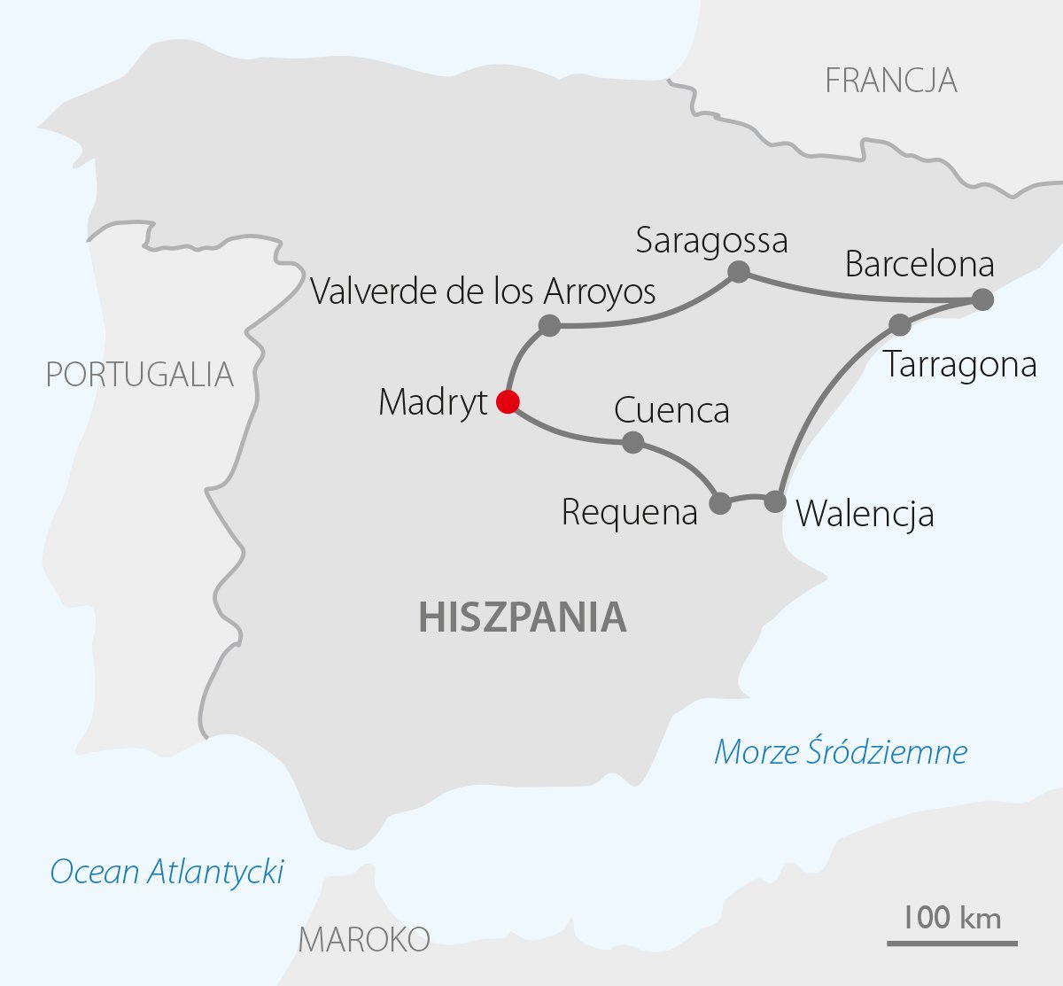 Madryt • Cuenca • Requena • Walencja • Tarragona • Barcelona • Saragossa • Valverde de los Arroyos • Madryt