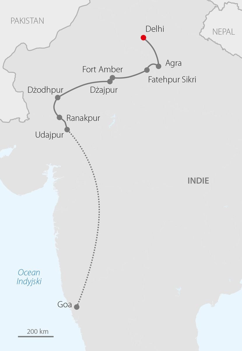 Indie, czyli niesamowite pałace, imponujące forty i wielkie kontrasty – odkryj niezliczoną ilość barw, którymi mieni się ten ogromny kraj i podziwiaj jego fascynujące oblicza. Baśniowy Udajpur zachwyci romantycznymi pejzażami, Delhi to bogactwo unikalnych zabytków z listy UNESCO, a Tadż Mahal to jeden z cudów świata, który rozsławia Agrę. Poznaj oryginalne rękodzieło i skosztuj orientalnych przypraw prosto z tutejszych bazarów. Urozmaicony program to idealny pomysł na odkrywanie najciekawszych zakątków i beztroskie leniuchowanie, dlatego zanurz się w odległej historii, zwiedzaj i… wyleguj się na słońcu! Ostatnie dni wycieczki to wypoczynek na rajskich plażach regionu Goa, który pozwoli na błogi relaks po pełnym wrażeń zwiedzaniu.