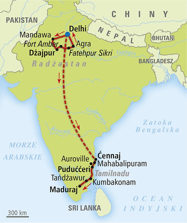Poszerzenie znanego i lubianego programu ITAKI „Kolory Indii” o zwiedzanie stanu Tamilnadu słynącego z przepięknych świątyń. W programie jest cała kwintesencja Indii: hinduska klasyka, pełne kontrastów Delhi, Tadż Mahal – nowożytny cud świata, Różowe Miasto Dżajpur, imponujący Fort Amber, Fatehpur Sikri – Miasto Zwycięstwa, kompleks świątyń Maduraj, kolonialne Puduććeri, Pakuta Ardźumy – największy relief skalny na świecie oraz miasto idealne – Auroville.