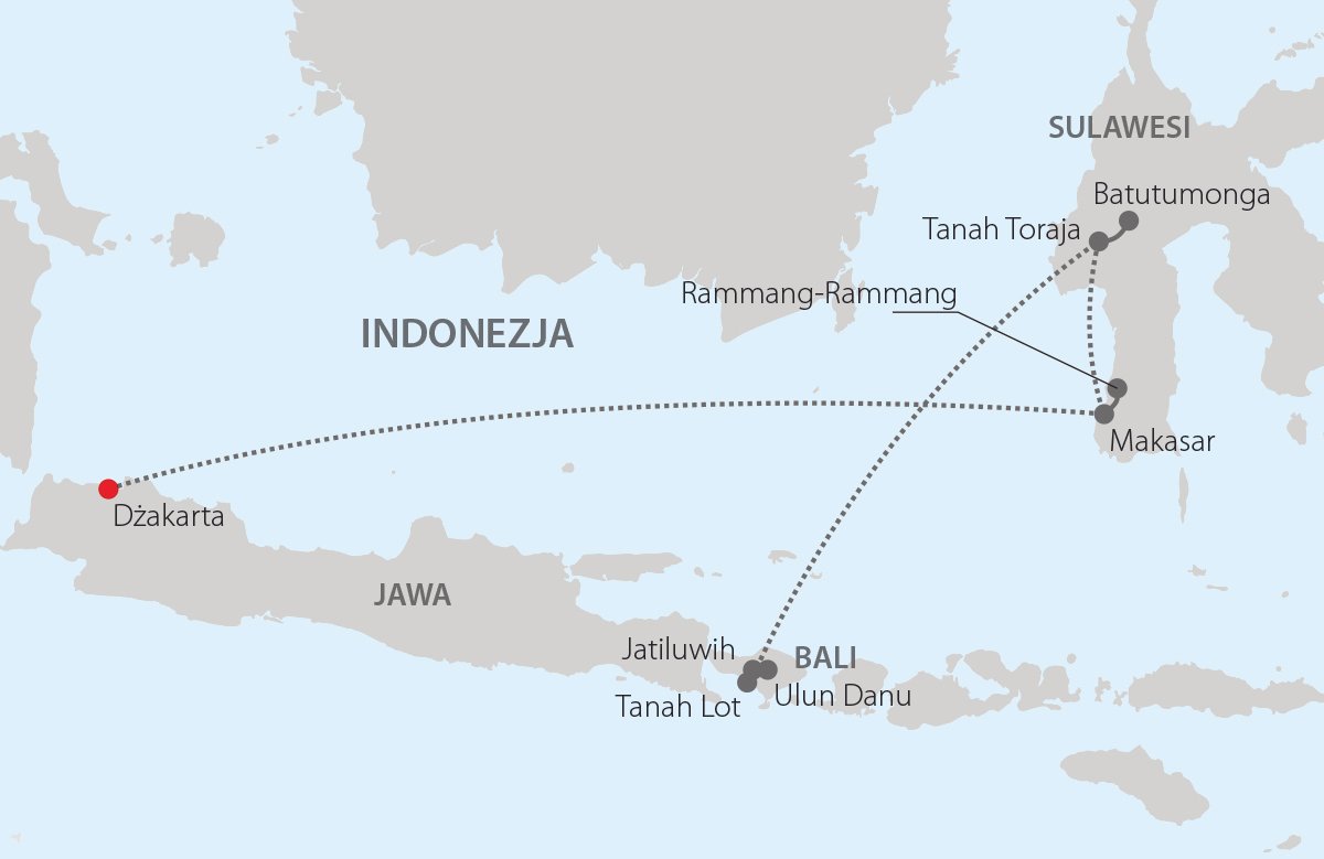 Odkryj najpiękniejsze zakątki Indonezji podczas fascynującej wycieczki na jej malownicze wyspy – każda z nich skrywa swoje tajemnice, urzeka niezwykłymi widokami i zachwyca różnorodnością kulturową. Sulawesi, dawniej znana jako Celebes, słynie ze spektakularnych formacji skalnych, czarujących krajobrazów i ciekawych, lokalnych tradycji. W programie m.in. rejs łodzią po rzece, eksploracja jaskini oraz wizyta w tradycyjnych wioskach ludu Toraja, znanego z przeprowadzania unikalnych obrzędów pogrzebowych. Na zakończenie rajska Bali z egzotyczną przyrodą, przepiękną architekturą i rozległymi tarasami ryżowymi. Zanurz się w duchowej atmosferze wyspy podczas zwiedzania majestatycznych świątyń i pozwól sobie na chwilę lenistwa wypoczywając na jednej z jej bajecznych plaż.