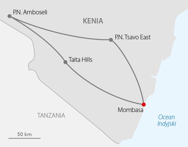 Widok szczytu Kilimandżaro – magicznego masywu na granicy Kenii i Tanzanii – będzie towarzyszyć uczestnikom safari. Część jego stoków należy do Parku Narodowego Amboseli, uznanego przez UNESCO za rezerwat biosfery. Na sawannie, tworzącej dywany traw łatwo można wypatrzeć dzikie zwierzęta w ich naturalnym środowisku. Poza parkiem Amboseli, w programie także bezkrwawe łowy w Tsavo – największym parku narodowym Kenii. Wypoczynek nad Oceanem Indyjskim w wybranym hotelu z oferty ITAKI będzie dopełnieniem wrażeń egzotycznej wyprawy.