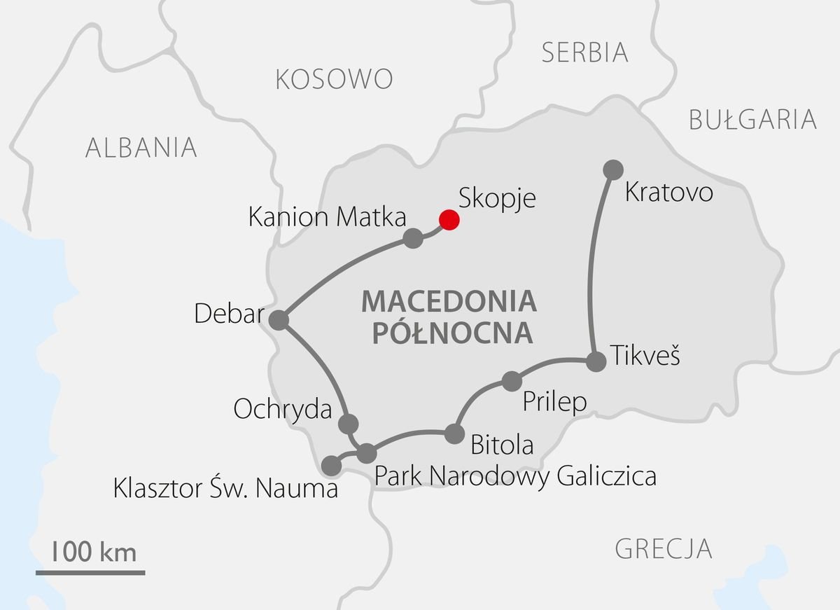 Odkryj Macedonię Północną – kraj niezwykłych krajobrazów, starożytnych miast i żywej tradycji Bałkanów. Podczas tej wycieczki zanurzysz się w klimacie Skopje, popłyniesz łodzią po malowniczym Kanionie Matka i zachwycisz się urokiem Ochrydy – perły wpisanej na Listę Światowego Dziedzictwa UNESCO. Nie zabraknie również czasu na relaks nad jeziorem i delektowanie się lokalną kuchnią, a widokowa trasa przez Park Narodowy Galiczica, antyczna Heraclea Lyncestis oraz górski monastyr Treskawec zachwycą miłośników historii i natury. W programie znalazły się także monumentalne ruiny Markovi Kuli, lokalna winiarnia w regionie Tikveš i klimatyczne Kratovo z kamiennymi mostami. Gotowi na podróż pełną kontrastów, smaków i widoków?