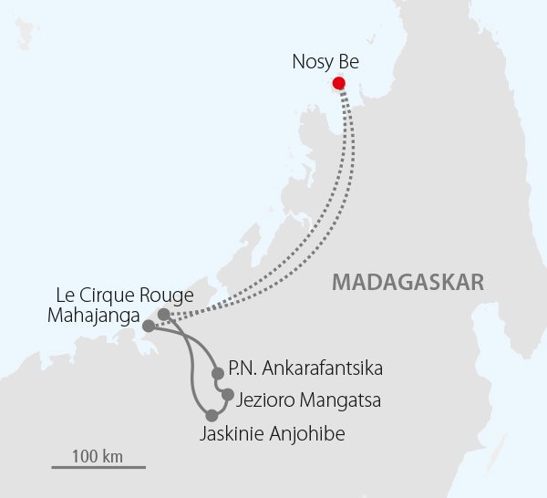 Jeżeli marzysz o podróży na koniec świata, tropikalnych białych plażach i spotkaniach ze zwierzętami jak z bajki, to właśnie znalazłeś idealną propozycję. Madagaskar zachwyca wszystkich bez wyjątku. Przyroda, krajobrazy jak z raju i błękit oceanu sprawiają, że jest to miejsce unikalne w skali całego świata, dlatego wycieczka jest dedykowana osobom, które poszukują nowych wrażeń, przygody i egzotyki. Na wyciągnięcie ręki jest dzika przyroda, spotkania z lemurami, krokodylami. Na trasie są cuda natury w parkach narodowych, jest także czas na plażowanie. Wszystko to w niezwykle komfortowych warunkach – wysokiej klasy hotele gwarantują odpoczynek i relaks po dniu pełnym wrażeń, a dodatkową atrakcją są przeloty awionetką.