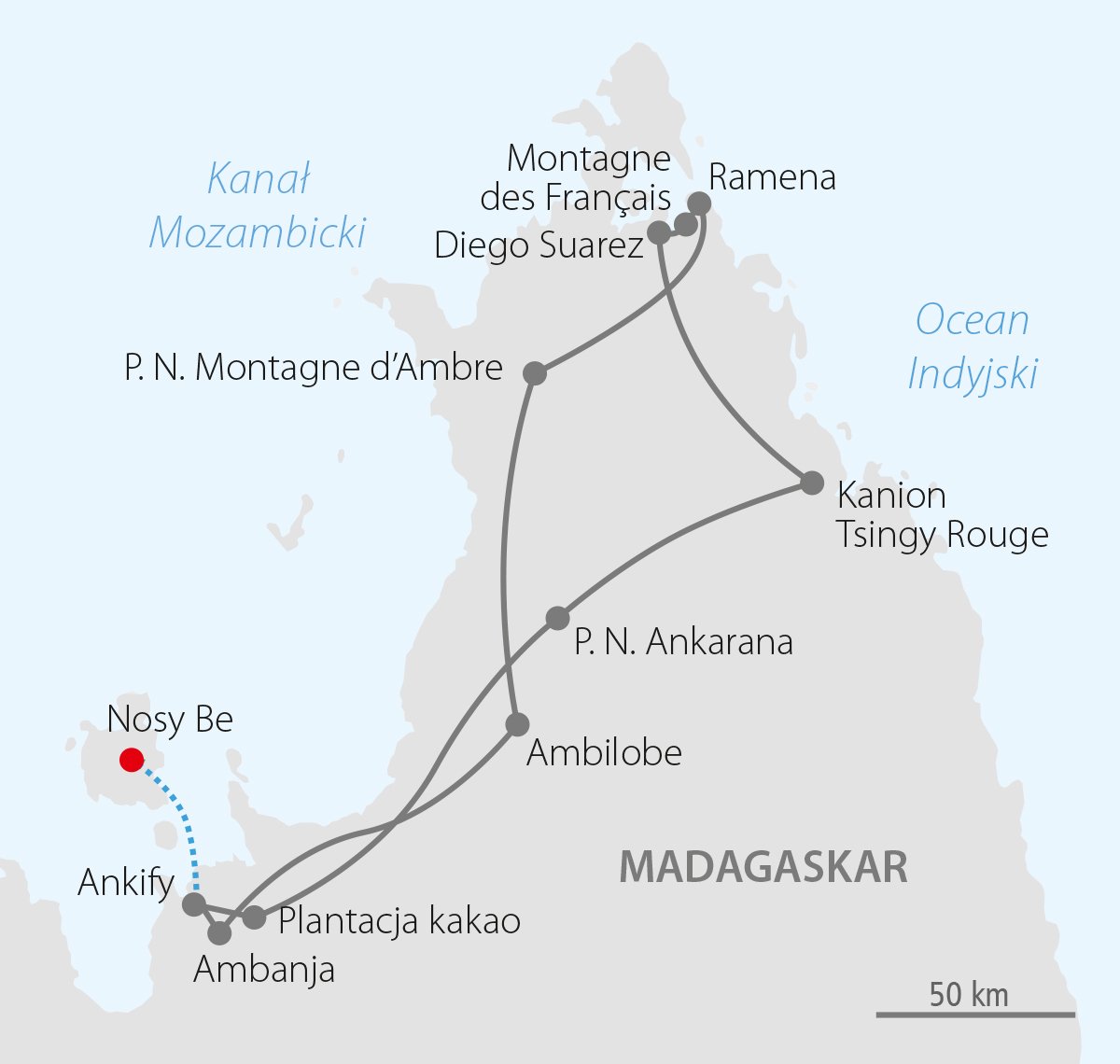 Madagaskar to wyspa jedyna w swoim rodzaju. Miliony lat izolacji od innych lądów sprawiły, że około 80 procent flory i fauny jest tu unikalne i niespotykane nigdzie indziej na świecie. Program wycieczki pozwoli zwiedzić i podziwiać urokliwe, a wręcz bajkowe miejsca tego tajemniczego zakątka ziemi. Góry, parki narodowe, a w nich wszędobylskie lemury, ciekawa historia i kultura oraz wiele innych atrakcji pozwoli odkryć nową, interesującą część naszej planety. Po pełnym wrażeń programie warto przedłużyć wakacje o wypoczynek w wybranym hotelu z oferty ITAKI na pięknej Nosy Be.
