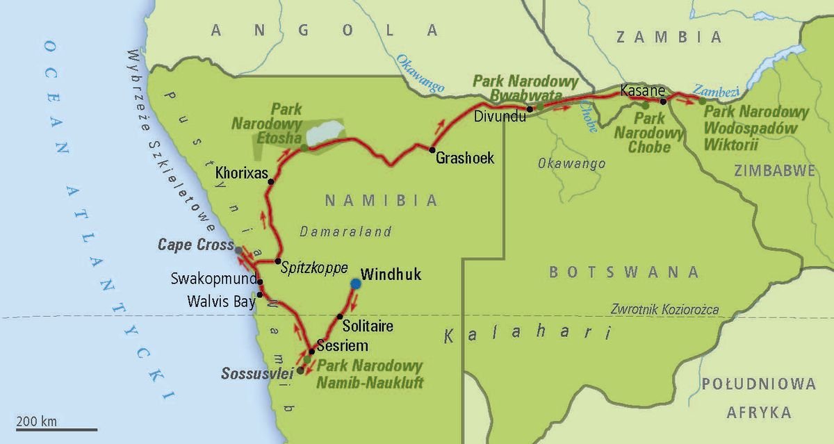 Przygotuj się na niezwykłe doświadczenia w Afryce – to wyprawa prywatnymi samochodami docierająca do trzech różnych krajów: Namibii, Botswany i Zimbabwe. Przemierz najstarszą pustynię świata – Namib, zobacz kolonię kotików na przylądku Cross oraz cofnij się w czasie i przespaceruj po kolonialnym skrawku Niemiec w Swakopmund. Spędź noc w Spitzkoppe z widokiem na drogę mleczną i Krzyż Południa, wjedź do królestwa zwierząt w Parku Narodowym Etosha i przekrocz granicę z Botswaną po to, żeby spłynąć rzeką Chobe wypatrując największej na świecie populacji słoni. Wkrocz do Zimbabwe, by zobaczyć słynny Wodospad Wiktorii. Odetnij się od cywilizacji i choć przez chwilę „poczuj” Afrykę – w Europie ludzie mają zegarki, w Afryce ludzie mają czas! Ta wyprawa przewiduje moc wrażeń! Ku przygodzie, bez zasięgu.