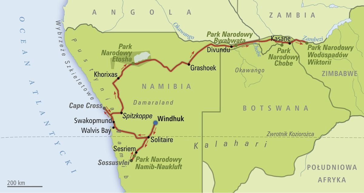 Przygotuj się na niezwykłe doświadczenia w Afryce – to wyprawa prywatnymi samochodami docierająca do trzech różnych krajów: Namibii, Botswany i Zimbabwe. Przemierz najstarszą pustynię świata – Namib, zobacz kolonię kotików na przylądku Cross oraz cofnij się w czasie i przespaceruj po kolonialnym skrawku Niemiec w Swakopmund. Spędź noc w Spitzkoppe z widokiem na drogę mleczną i Krzyż Południa, wjedź do królestwa zwierząt w Parku Narodowym Etosha i przekrocz granicę z Botswaną po to, żeby spłynąć rzeką Chobe wypatrując największej na świecie populacji słoni. Wkrocz do Zimbabwe, by zobaczyć słynny Wodospad Wiktorii. Odetnij się od cywilizacji i choć przez chwilę „poczuj” Afrykę – w Europie ludzie mają zegarki, w Afryce ludzie mają czas! Ta wyprawa przewiduje moc wrażeń! Ku przygodzie, bez zasięgu.