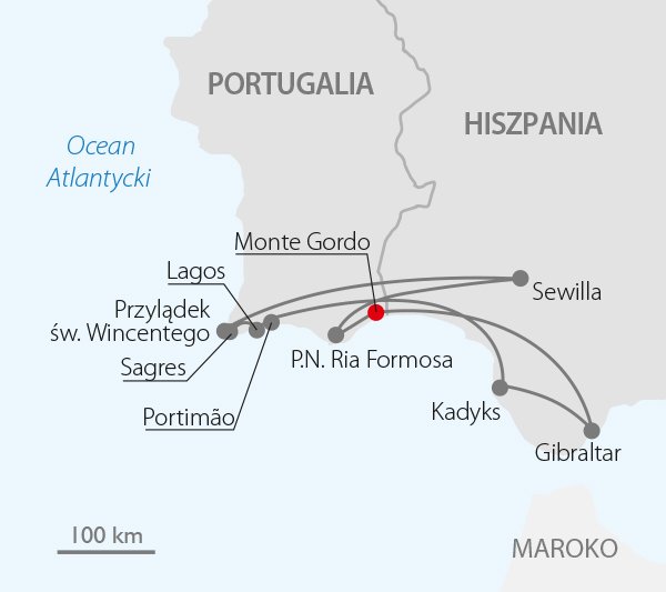 Odkryj z nami naturę Algarve i zobacz najważniejsze zabytki Andaluzji! Zapraszamy na fantastyczną wycieczkę, w programie której m.in. zwiedzanie Parku Narodowego Ria Formosa, który jest jednym z największych chronionych terenów lagunowych w Europie! Zobaczysz także Kadyks, miasto niemal ze wszystkich stron otoczone wodami zatoki, uchodzące za najstarsze w tej części Europy (ponad 3 tys. lat!). Podczas wycieczki zaplanowano także czas na odpoczynek na wspaniałych plażach Algarve lub udział w wycieczkach fakultatywnych, w tym do Sewilli – stolicy Andaluzji i największego miasta hiszpańskiego południa, a także do Gibraltaru – brytyjskiego terytorium zamorskiego na Półwyspie Iberyjskim.