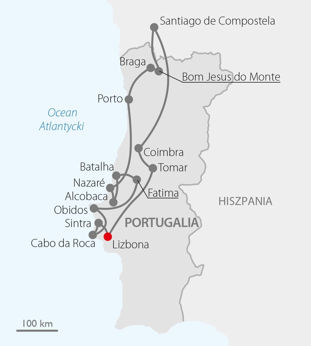 Piękna krajobrazowo i bogata w zabytki z listy UNESCO wycieczka po najciekawszych miejscach słynnej z urody Portugalii, tym razem z bezpośrednim przelotem do Lizbony. Na trasie Sintra z przepięknymi rezydencjami i tajemniczymi zamkami, Coimbra, gdzie starożytność łączy się z teraźniejszością, Porto - miasto o niepowtarzalnej atmosferze, gdzie będzie czas na degustację słynnego trunku i oczywiście niezwykle urokliwa Lizbona. W programie także najważniejsze ośrodki życia religijnego Portugalii i Hiszpanii, w tym słynne sanktuaria: Santiago de Compostela, Fatima i Bom Jesus do Monte.