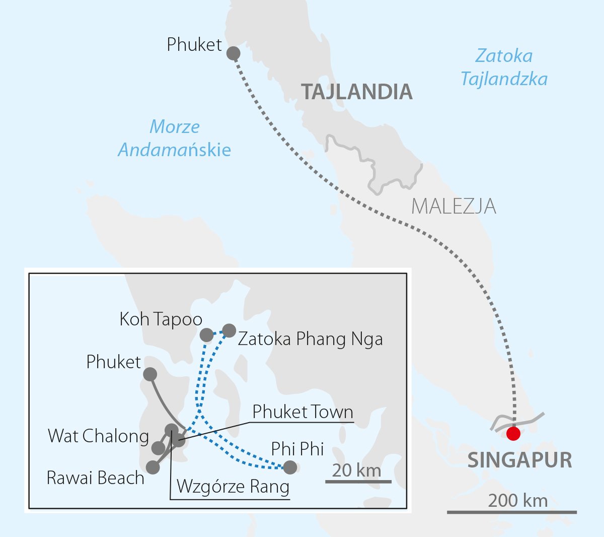 Szalone tempo życia w Singapurze – Mieście Lwa i pełen relaks na rajskich plażach Tajlandii to bardzo dobry pomysł na wakacje. Kosmopolityczny Singapur szokuje rozmachem, fascynuje połączeniem tradycji z nowoczesnością, a zjawiskowe Ogrody nad Zatoką na długo pozostaną w pamięci. Wyspa Phuket to azjatycki klimat, ponad 20 plaż, mnóstwo sklepów, restauracji, nocne życie, ale także przyroda, spokój, raj dla amatorów pływania i snurkowania w krystalicznej wodzie. Kusi plażowanie i nicnierobienie, ale warto wybrać się także na fantastyczne wycieczki fakultatywne: rejs na słynne Phi Phi, aby odkryć piękno niezwykłych wysepek i wyprawa do prawdziwej dżungli w Parku Narodowym Khao Sok.