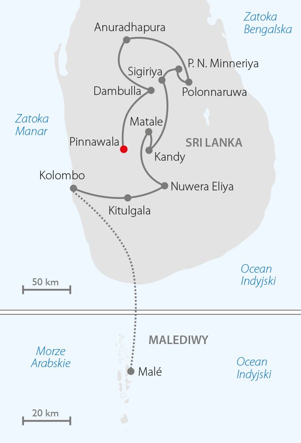 Unikalne świątynie skalne, 3 stolice antycznego Cejlonu: na trasie wycieczki najciekawsze miejsca magicznej wyspy, gdzie tradycja Dalekiego Wschodu przenika się z nowoczesnością. W bogatym i zróżnicowanym programie jest także safari po parku narodowym, wizyta w sierocińcu słoni i malownicze widoki egzotycznych plantacji herbaty, narodowego bogactwa Cejlonu. Egzotyczna wyspa zachwyca bujną roślinnością, soczystą zielenią dżungli, wodospadami i wspaniałymi plażami. Po tygodniu intensywnego, pełnego wspaniałych wrażeń zwiedzania jeszcze kilka dni wypoczynku w hotelu na rajskich Malediwach.