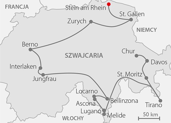 Niezwykle bogata w piękne widoki wycieczka prowadząca poprzez ośnieżone szczyty Alp do słonecznego, pełnego palm i kolorów Ticino – najbardziej południowego kantonu Szwajcarii, nazywanego „Svizzera italiana”. Na trasie są największe atrakcje Szwajcarii, przejazd pociągiem panoramicznym, wizyta w Pałacu Lodowym, rejs statkiem po jeziorze Lugano, miasta o ciekawej architekturze, miejsca z listy UNESCO.