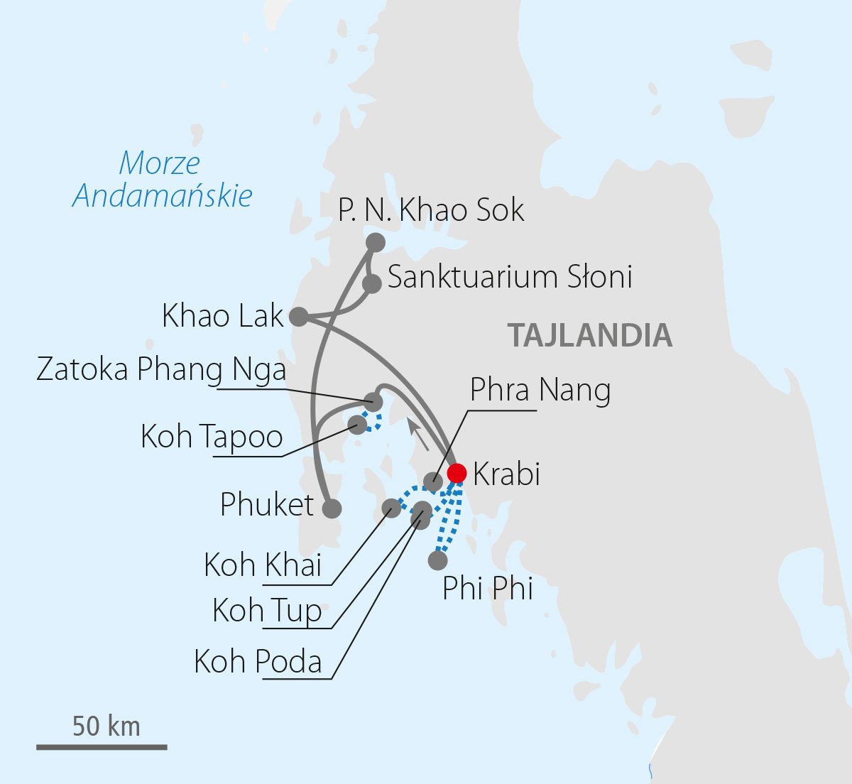 Śniadanie. Przejazd do przystani. Rejs łodzią w wyjątkowe miejsca: PHRA NANG – czyli malowniczej zatoczki z wieloma pięknymi wyspami, KOH KHAI – Wyspy Kurczaka nazwanej tak ze względu na podobieństwo do tego ptaka, KOH TUP zdobiącej pocztówki z Tajlandii, która stanowi także idealne miejsce do snurkowania oraz KOH PODA – rajska wysepka z białym piaskiem i rzędami palm, przy których można schronić się przed słońcem. Podczas wycieczki możliwość: pływania, snurkowania oraz opalania we wspaniałych okolicznościach przyrody. Obiad w formie pikniku na plaży. Powrót do przystani, przejazd do hotelu. Kolacja i nocleg.
