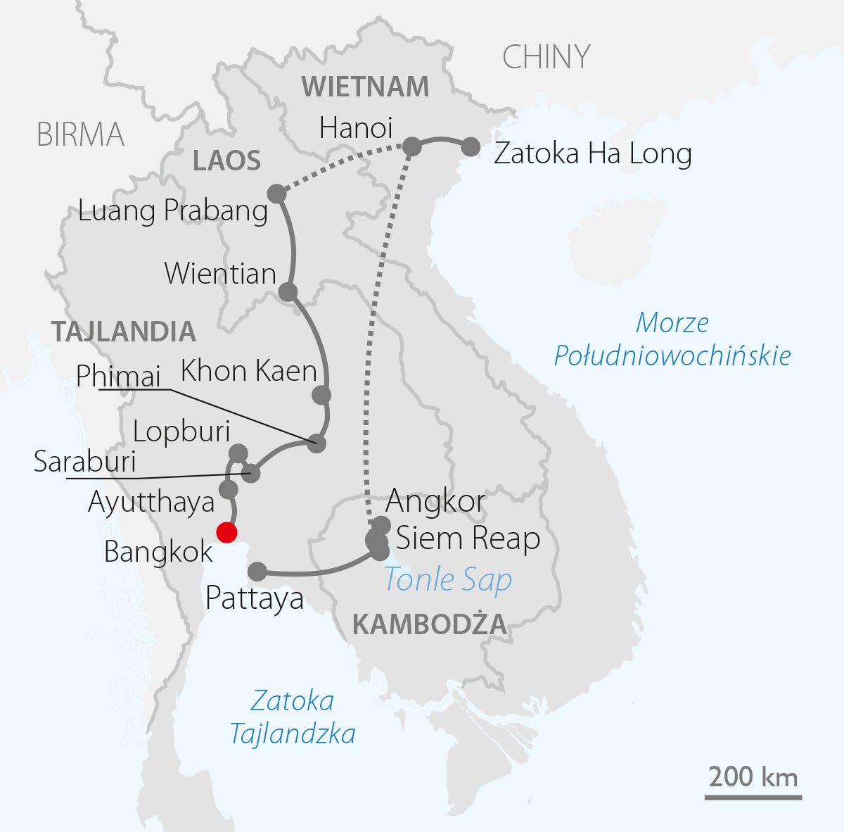 Tajlandia, Laos, Wietnam i Kambodża za jednym razem! Odkryj 4 kraje i 3 stolice podczas niezapomnianej przygody w ramach wycieczki „Azja Extra”. Czekają na Ciebie m.in. wspaniałe zabytki Bangkoku, majestatyczne świątynie Luang Prabang, malownicza zatoka Ha Long czy magiczne ruiny Angkor Wat. Każde z tych miejsc oczaruje Cię swoją historią i egzotycznym krajobrazem. Dodatkowo, możesz także skorzystać z ciekawych propozycji fakultatywnych, jak rejsy, kolacje z lokalnymi przysmakami czy pokazy tradycyjnych tańców. Zanurz się w lokalnej kulturze, spróbuj egzotycznych potraw i przeżyj niezapomniane chwile na nocnych targach. W programie także relaks na słonecznych plażach Pattayi – idealne zwieńczenie tej azjatyckiej przygody, zapewniające chwile wytchnienia i niezapomniane wspomnienia!