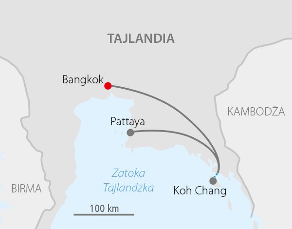 Bangkok • Koh Chang • Pattaya Zawrotne tempo życia Bangkoku – Miasta Aniołów i pełen relaks na rajskich plażach Koh Chang to idealne połączenie na fantastyczny wypoczynek i odkrywanie skarbów Tajlandii. Nowoczesność przeplata się tu z tradycją, wielkomiejski zgiełk z intymnością świątyń buddyjskich, a barwy, smaki i zapachy przyprawiają o zawrót głowy. Bogactwo zabytków Bangkoku i rozmach nowoczesnej architektury spotykają się z wakacyjną atmosferą Koh Chang, trzeciej co do wielkości wyspy Tajlandii, znanej także jako Elephant Island. Wyspa stanowi część Parku Narodowego Mu Ko Chang, zachwycają tu pokryte dżunglą górskie szczyty, rozległe zatoki, wspaniałe wodospady, urokliwe piaszczyste plaże, krystalicznie czyste morze i piękna rafa koralowa, idealne dla amatorów nurkowania. Relaks, egzotyczne krajobrazy i piękno przyrody – to idealny przepis na niezapomniane wakacje! Warto przedłużyć wypoczynek w wybranym hotelu z bogatej oferty ITAKI. Trasa w Tajlandii: ok. 570 km.