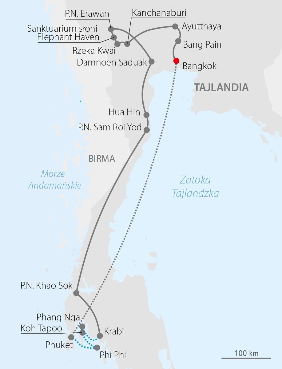 Miejsko-wyspiarska przygoda po tajsku, to przepis na wakacje marzeń! Wyrusz w podróż w kameralnej grupie, ciesząc się komfortem noclegów w 4-gwiazdkowych hotelach. Na trasie same perły krainy uśmiechu – wspaniałe zabytki, za którymi stoi bogata historia kraju, zapierające dech świątynie, przepiękne naturalne skarby, jak egzotyczne parki narodowe i mniejsze lub większe rajskie wysepki, na które dopłyniesz z Krabi. Po pamiątki i miejscowe cudeńka wybierzemy się na słynny Damnoen Saduk, a prawdziwego, aromatycznego street-foodu spróbujesz w kosmopolitycznym Bangkoku, na słynnej Khao San, która nocą budzi się do życia! Na dokładkę – ekscytujący rejs na wyspę Koh Tapoo kojarzoną z Bondem oraz czas na błogi relaks na rajskich plażach.
