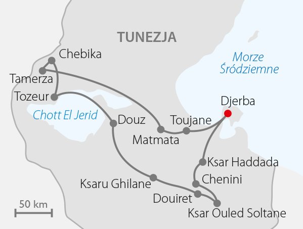 Z dala od resortowego zgiełku, tłumu turystów, gwarnych promenad… Poczuj prawdziwy i autentyczny klimat Tunezji. Fascynująca podróż w głąb pustyni samochodami terenowymi z napędem 4x4. Na trasie są wspaniałe ksary, wizyty w medynach i na tradycyjnych bazarach, pustynne pejzaże i saharyjski księżycowy krajobraz. Schronienie przed gorącym słońcem dają liczne oazy, które stały się tłem znanych produkcji filmowych, m.in. „Gwiezdne wojny”, „Indiana Jones” czy „Angielski pacjent”. Cofnij się w czasie i przenocuj w tradycyjnym domostwie Berberów, podziwiaj rozgwieżdżone niebo w obozie na Saharze. Warto przedłużyć pobyt w Tunezji o tygodniowy wypoczynek na Djerbie w wybranym hotelu z oferty ITAKI. Długość trasy w Tunezji: ok. 1150 km.