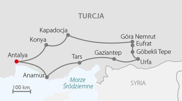 Wspaniała przyroda, zabytki światowej klasy wpisane na Listę Światowego Dziedzictwa UNESCO. Na trasie księżycowe krajobrazy Kapadocji, widoki z góry Nemrut z posągami o okrytych tajemnicą dziejach, miejsca związane z życiem proroka Abrahama, oryginalna „Turecka Noc” w jaskini. Zdecydowanie godne polecenia są ciekawe propozycje imprez fakultatywnych: lot balonem nad Kapadocją i taniec wirujących derwiszów. Fantastyczna oferta na wypoczynek po zwiedzaniu: tureckie hotele są znane z dobrego standardu i wysokiego poziomu all inclusive.