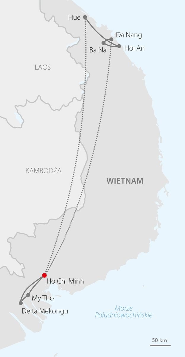 Kiedyś odległy i nieznany, dziś jest celem wielu podróżników i wczasowiczów spragnionych autentycznych wrażeń, wyjątkowych widoków i fascynujących smaków. Wybierz się do Wietnamu i zakochaj się w jego najpiękniejszych zakątkach – daj się zaskoczyć tętniącemu życiem Ho Chi Minh, podziwiaj zapierające dech widoki podczas przejazdu kolejką na słynny, Złoty Most i zobacz wyjątkową konstrukcję, jaką jest Smoczy Most. Podziwiaj niesamowite krajobrazy Delty Mekongu i poczuj klimat cesarskiego miasta Hue, które jest wyjątkową mieszanką kultur i ważnym, historycznym punktem. W programie mnóstwo kulinarnych smaczków, m.in. kolacja w restauracji na wodzie i warsztaty kulinarne z przygotowania tradycyjnych dań kuchni wietnamskiej. Koniecznie zaplanuj czas na wypoczynek po tak wyjątkowej wycieczce i zarezerwuj dodatkowy tydzień w hotelu z fantastycznej oferty ITAKI!