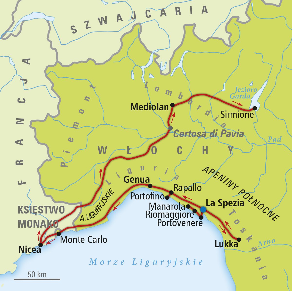 Najpiękniejsze widoki Ligurii i miasta północnych Włoch w urozmaiconym, bardzo ciekawym programie. Liguria – słynna kraina słońca i klimatycznych miejsc, gdzie zatrzymał się czas, zaprasza na krótkie wakacje nad Morzem Liguryjskim i podróż do Pięciu Światów – Cinque Terre. Na trasie są tak ciekawe miejsca jak Genua – dumna z Kolumba, czy kosmopolityczny Mediolan. Warto wybrać się na wycieczkę fakultatywną i w ciągu jednego dnia zwiedzić słynne miasta jak Monako, Monte Carlo i Niceę. Trasa we Włoszech: ok. 2000 km.