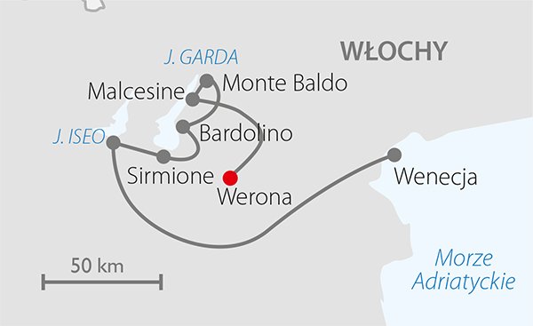Jezioro Garda uważane jest za najpiękniejsze na włoskim bucie. Czy tak jest naprawdę? Warto to sprawdzić i wybrać się z ITAKĄ do tej bajkowej krainy. W programie widok Gardy i okolicy z kolejki gondolowej na górę Monte Baldo, a także krótki rejs po jeziorze z widokiem na zamek w Sirmione, podczas którego można zobaczyć jak zróżnicowana jest linia brzegowa jeziora. Jezioro Iseo, sąsiad Gardy, zachwyci wysepkami i zielonym brzegiem z kolorowymi willami. Na zakończenie wizyty u sąsiada – degustacja win i produktów lokalnych. Niezapomnianych wrażeń dostarczy Werona – miasto Romea i Julii i rejs po Lido di Wenecja z kieliszkiem wina. Trasa we Włoszech: ok. 1000 km.