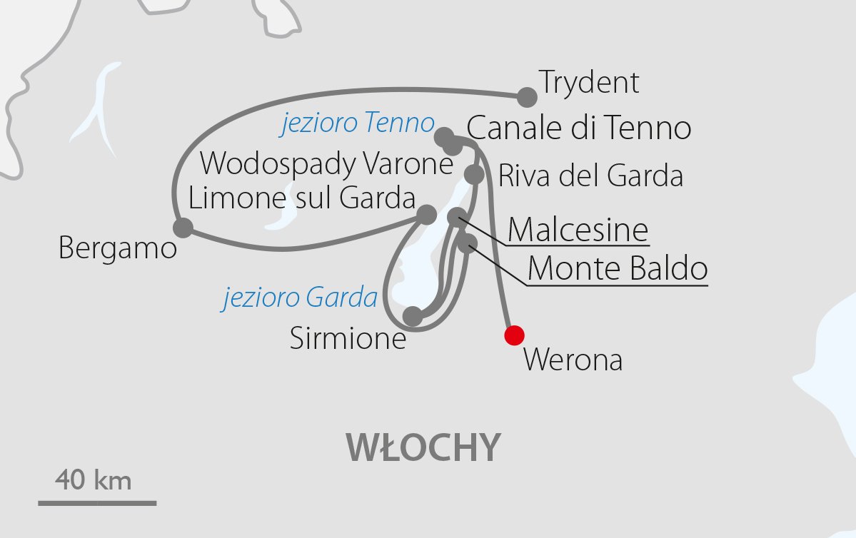 ​Werona • wodospady Varone • jezioro Tenno • Canale di Tenno • Riva del Garda • Sirmione • jezioro Garda • Malcesine • Monte Baldo • Limone sul Garda • Bergamo • Trydent