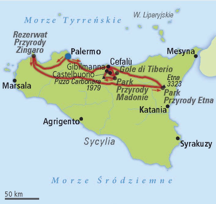 Śniadanie. Przejazd prywatnym autobusem do PARKU PRZYRODY MADONIE, jednego z najpiękniejszych parków krajobrazowych Sycylii, znanego z bogactwa endemicznych gatunków fauny i flory. Trekking rozpoczyna się przy schronisku górskim Rifugio Crispi na płaskowyżu Piano Sempria (1250 m n.p.m.). Wędrówka prowadzi ścieżką Sentiero Natura, otoczonej malowniczym, gęstym lasem. Na trasie podziwiać można różne gatunki dębów, z których najstarsze mają nawet 800 lat. W miarę zdobywania wysokości las stopniowo ustępuje miejsca pięknym widokom, zwłaszcza z punktu Balzo del Gatto, skąd panoramiczny widok rozciąga się aż po Morze Tyrreńskie z Wyspami Liparyjskimi na czele. Na trasie jest również wyjątkowy płaskowyż Piano Pomo, znany z ponad 200 gigantycznych drzew ostrokrzewu, osiągających do 15 metrów wysokości. To jedno z najważniejszych miejsc przyrodniczych Sycylii, które zachwyca nie tylko swoją różnorodnością, ale i niepowtarzalnym charakterem. Trekking kończy się na drugim co do wysokości szczycie Sycylii PIZZO CARBONARA (1979 m n.p.m.), gdzie nagrodą jest inspirujący widok na prawie całą wyspę wraz z surrealistycznym krajobrazem krasowym. Zejście do schroniska Rifugio Crispi. Powrót do hotelu. Kolacja. Nocleg.Trasa: ok. 14 km/ok. 5 godz. Suma podejść: ok. 750 m ↗. Suma zejść: ok. 750 m ↘.